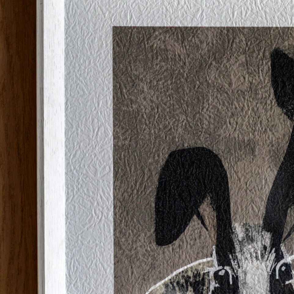 A curated pair of prints showcasing stylised hares in warm, natural tones. The textured compositions blend patterned details with minimalist sensibilities, merging folk art heritage with contemporary aesthetics. Ideal for those seeking understated but fun sophistication in their interiors.