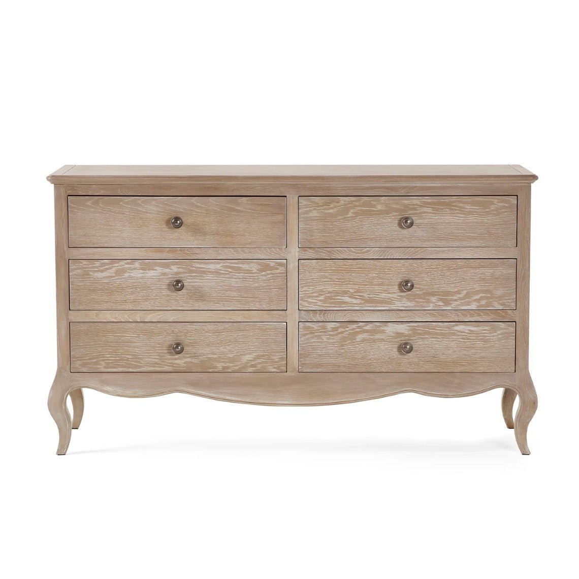 Inspired by French design, the Camille bedroom range boasts beautiful curves and soft lines. Featuring traditional ornate details – this collection exudes elegance and the chest of drawers has 6 drawers with three side by side offering plenty of stylish storage.