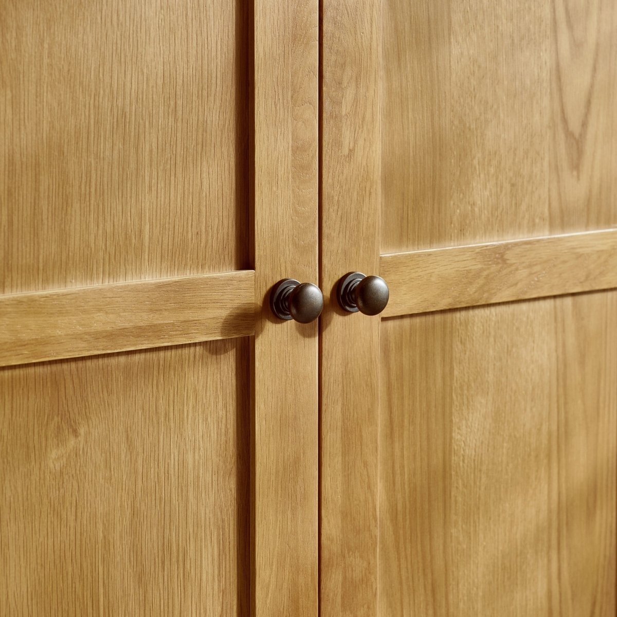 Our Marlborough Oak Wardrobe has 2 doors for plenty of hanging storage plus 2 additional lower drawers for additional storage. Constructed using the finest white oak and oak veneers, the timeless oak finish means each item is designed to add traditional style to your home.