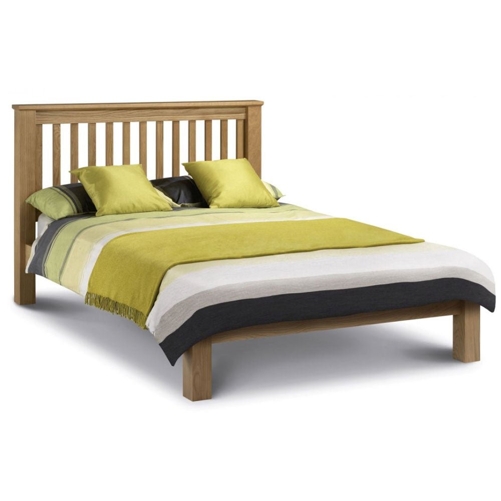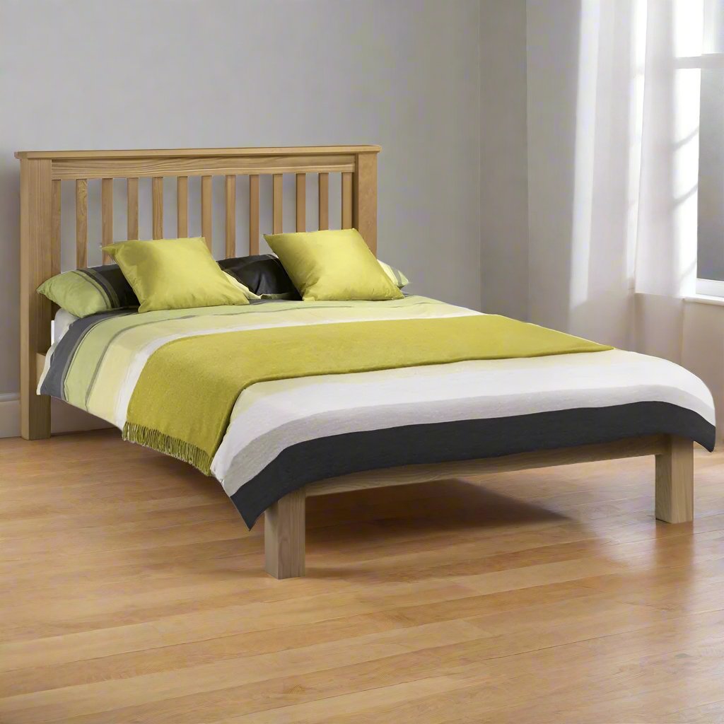 The Amsterdam Oak Bed with its low foot end works brilliantly with the Marlborough Oak bedroom collection. The shaker style oak finish makes this a timeless piece that is robust and has a sprung slatted sleeping base to ensure comfort and prolonged mattress life.