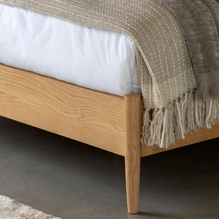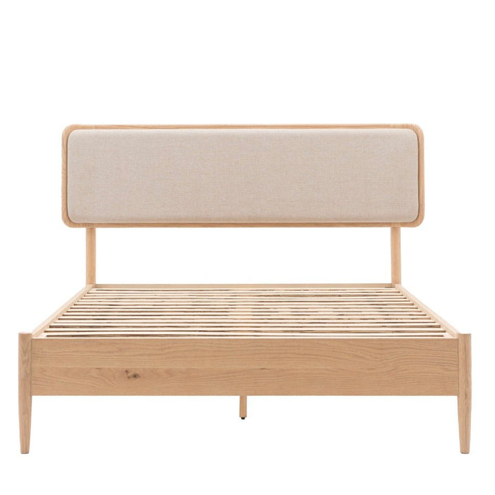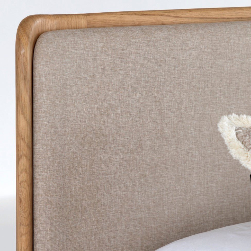 This Hatfield Bed boasts a timeless and fashionable aesthetic that complements any interior. Its solid oak frame and contemporary neutral fabric headboard compliments its simple and stylish design. Available in two sizes.