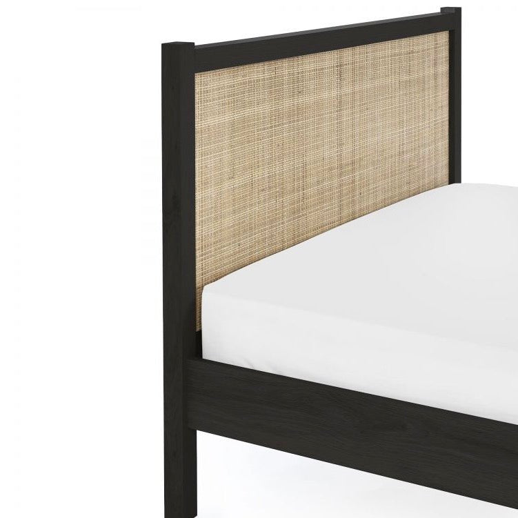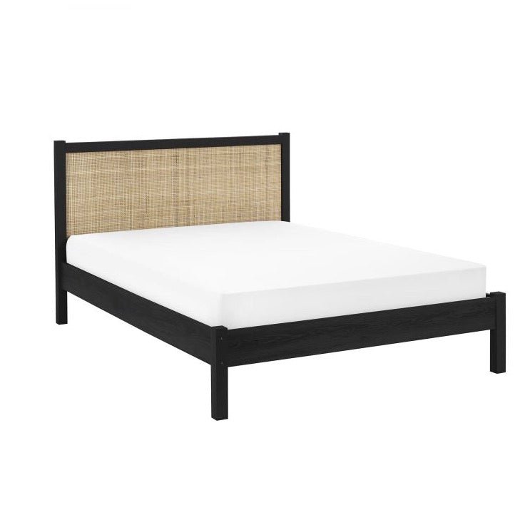 Experience unparalleled style and comfort with the Padstow Rattan Black Bed in Double or King Size. The intricate woven rattan headboard adds a touch of modern elegance and retro charm to your space. Combining timeless appeal with a contemporary twist, this bohemian-inspired design is a versatile addition to any decor. Crafted for durability, this bed offers sturdy support for a peaceful night's sleep, while the sleek black finish adds a bold and chic touch, elevating the ambiance of any room. This versatile piece is also offered in an oak finish. Please note - full assembly is required.