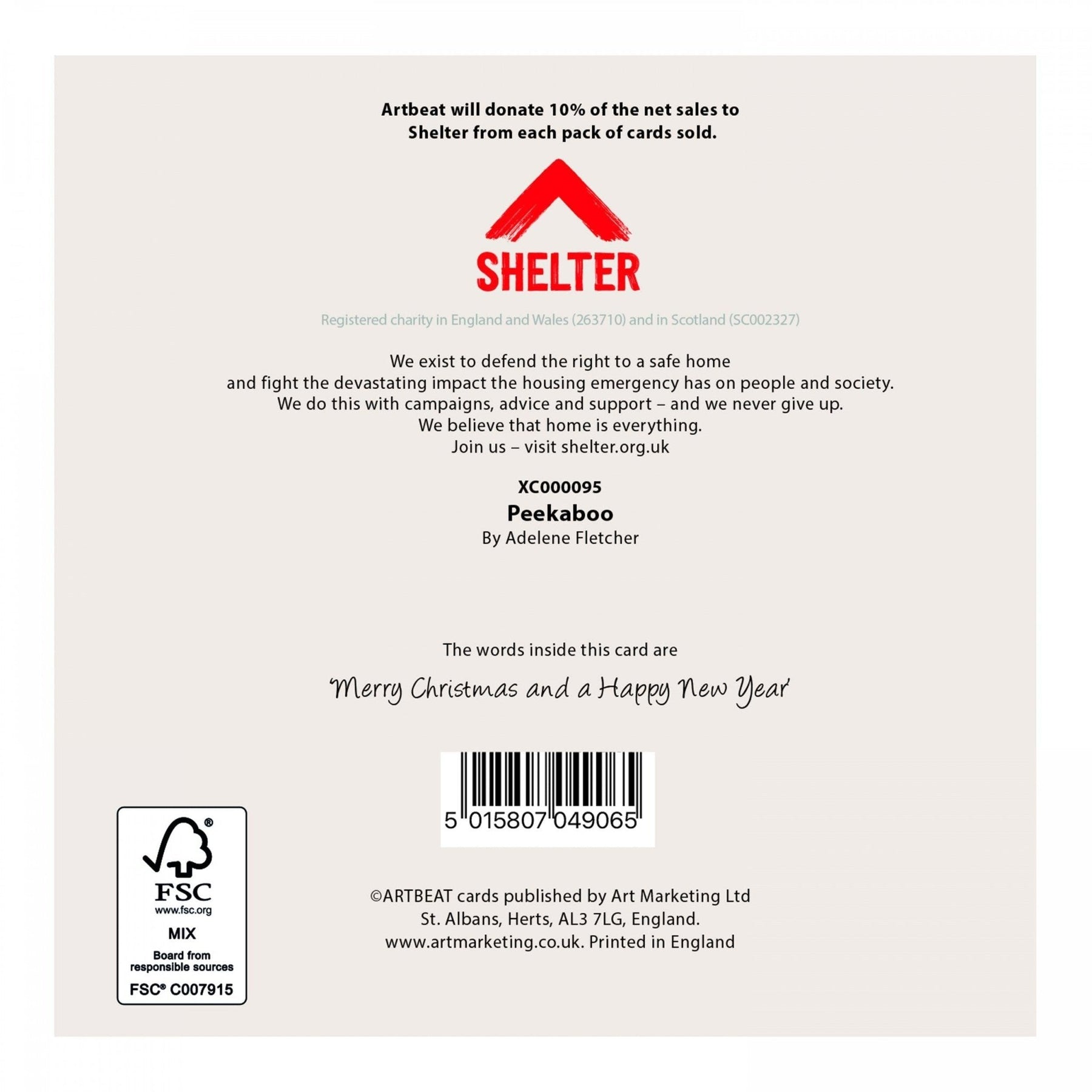 This cheeky little pony is nibbling the snowman's carrot nose! It's bound to make the recipient of this card smile. Each charity card is produced from sustainable wood pulp sourced from responsibly managed forests and are accredited with the FSC logo. The cards supports Shelter’s vital charity work in the community.