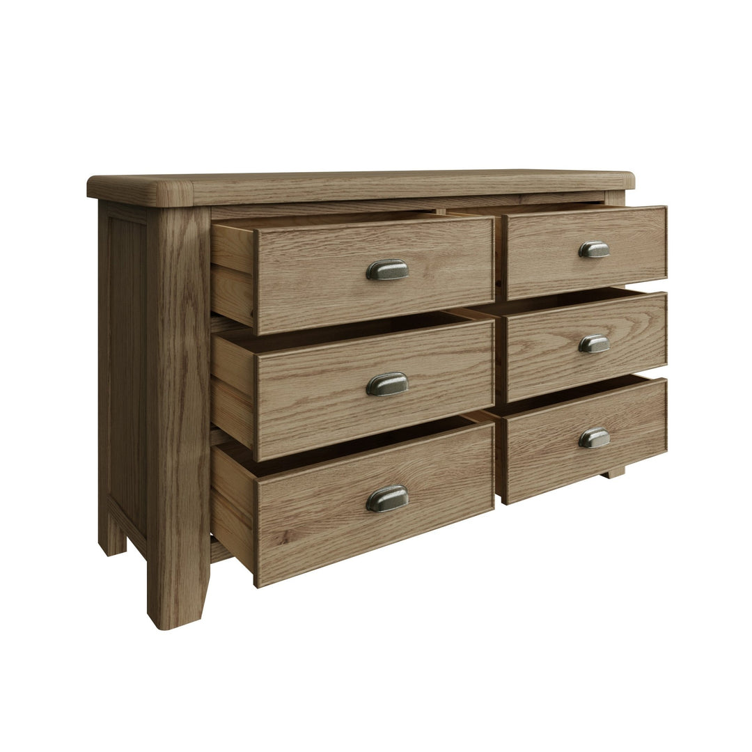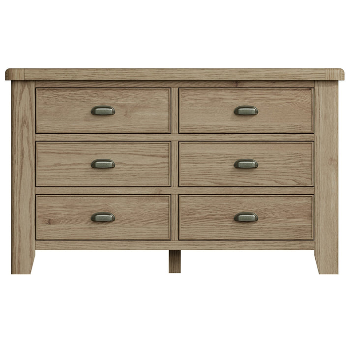 The Rusper Oak 6 Drawer Chest of Drawers has a timeless style. This bedroom collection in an oak finish with a smoked oak top can be enjoyed in interiors of all styles. The perfect way to bring a touch of class and character.