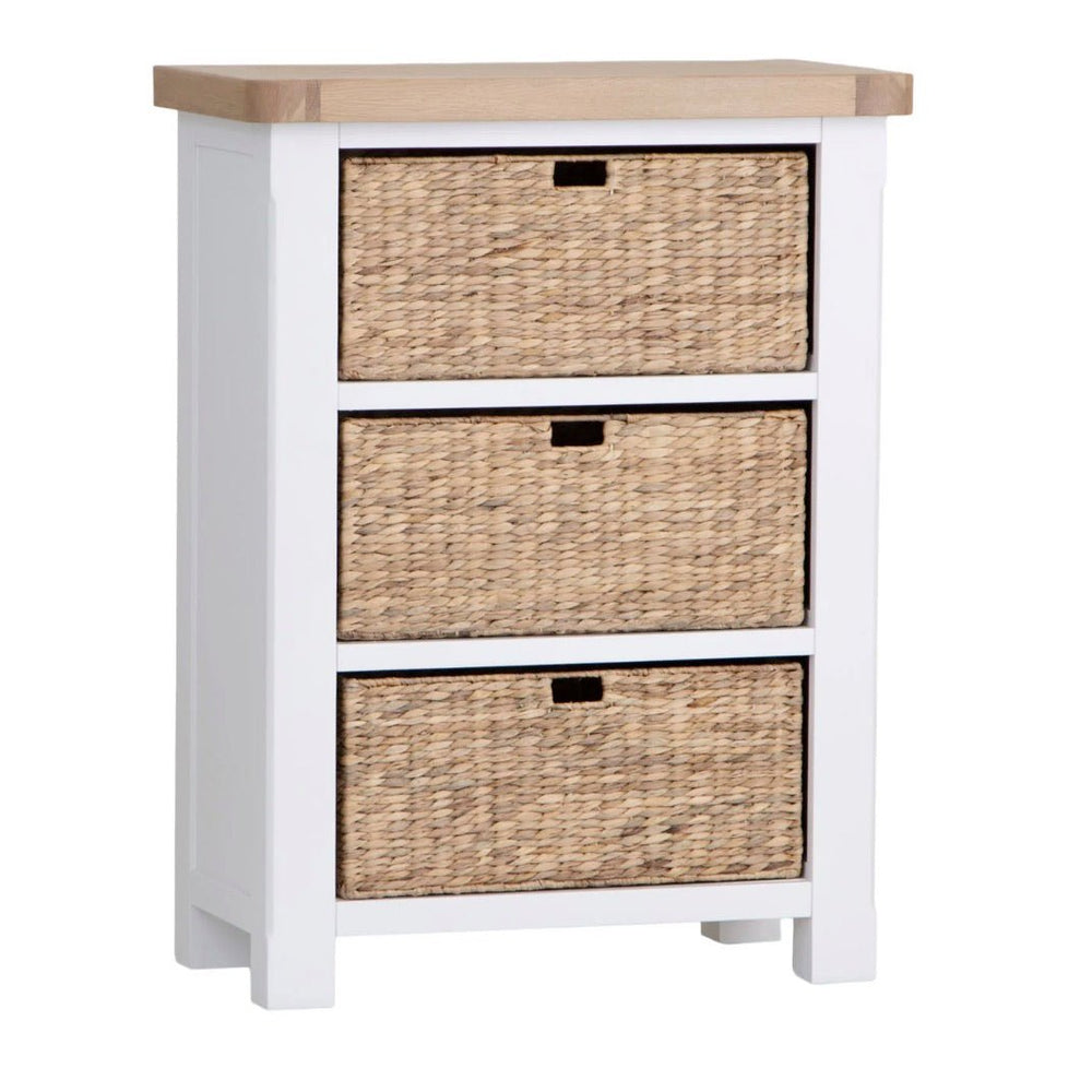 The Clanfield collection offers a contemporary take on the traditional farmhouse look, incorporating the fresh white paintwork mixed with the oak finish. The wood tops are treated with high-quality Danish furniture oil from Woca, providing durability against dirt and water while highlighting the wood's natural grain. The white painted furniture is a mix of oak tops, pine and MDF. Items are fully assembled.