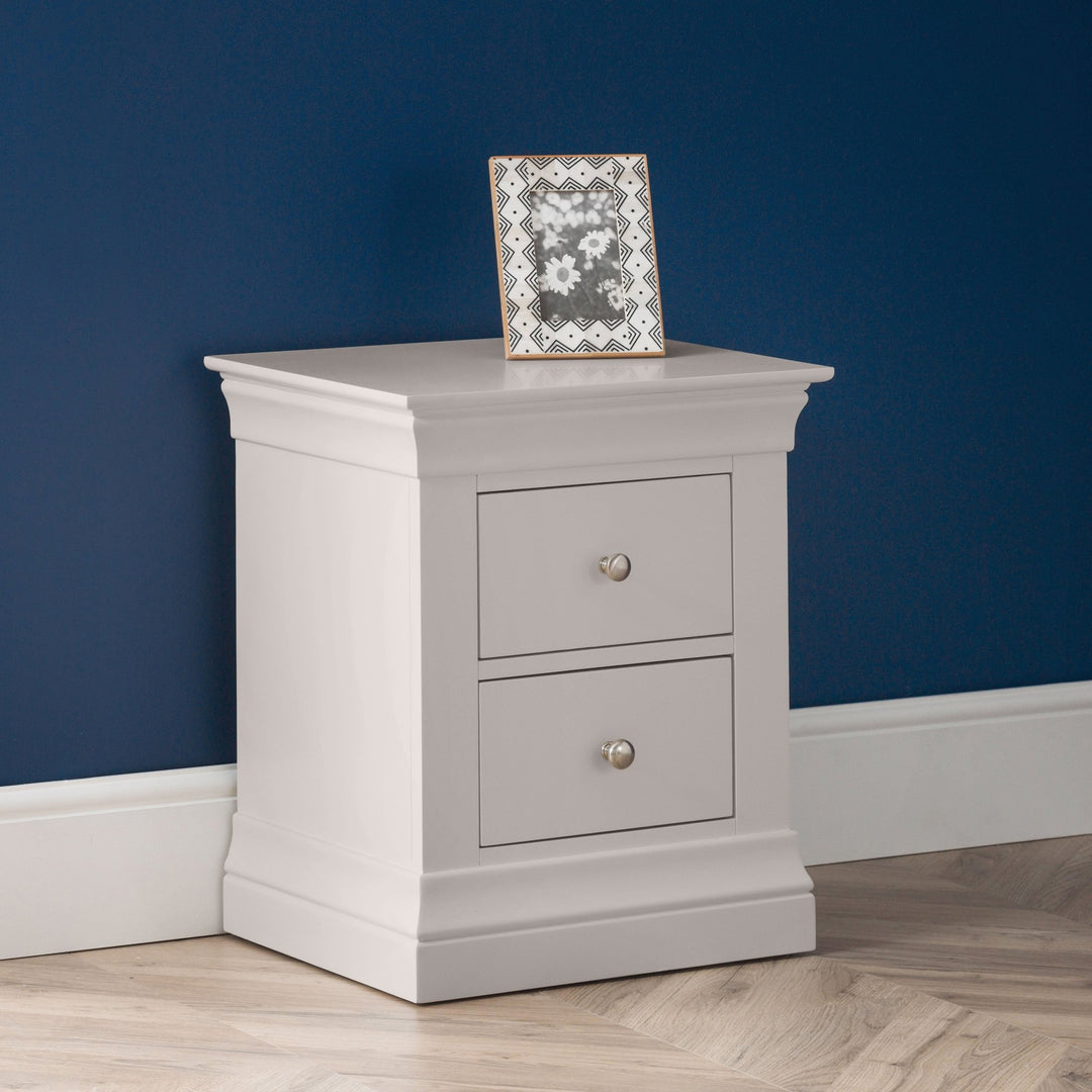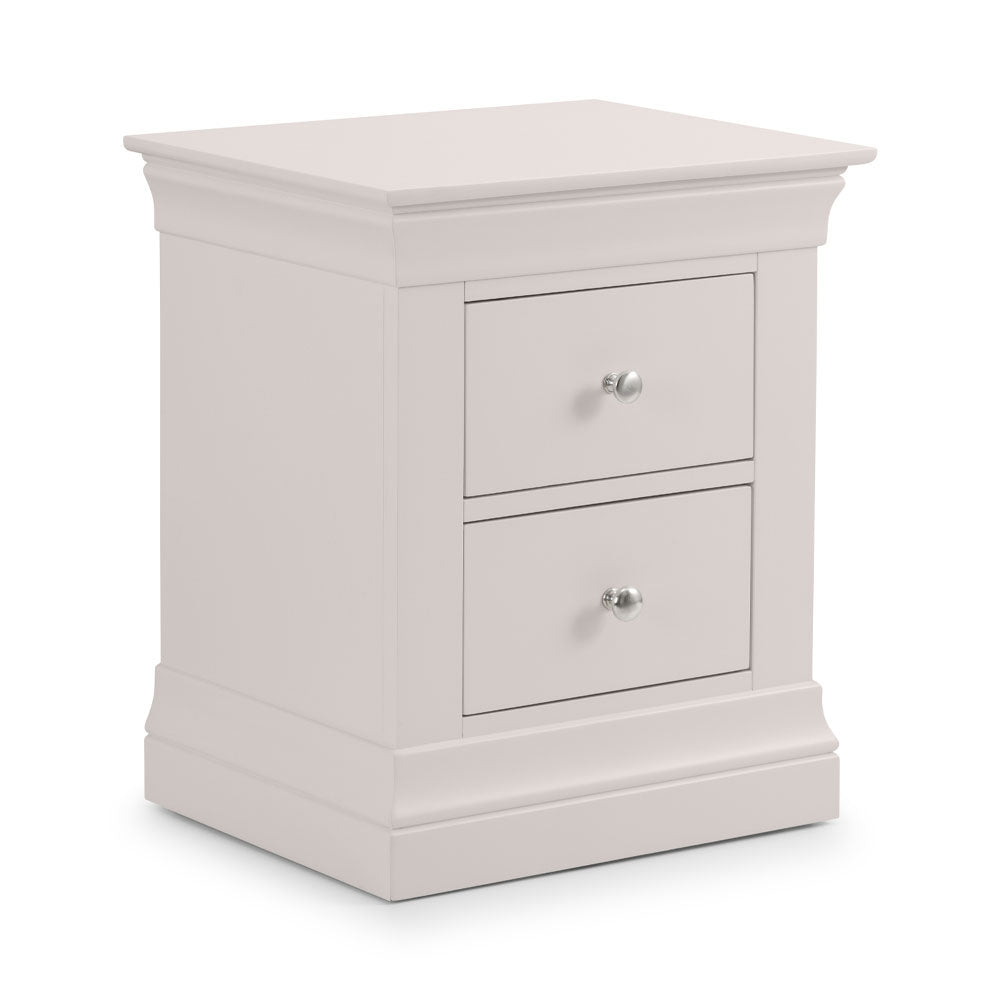 The Clermont Light Grey Bedroom Collection is finished in a lacquered finish, with simple clear lines that add a feeling of light and space. Crafted from Pine and MDF, featuring brushed steel handles, this elegant French inspired design is suitable for both contemporary and traditional settings. Free UK Mainland delivery.