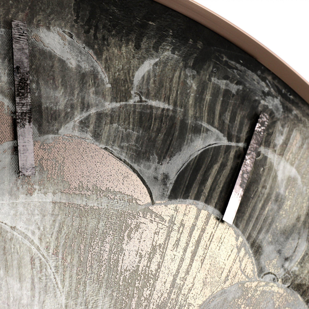 This giant Thomas Kent Charleston wall clock has a scallop design on the clock face with influence from the 1920s Art Deco movement. A brass rim encases the elegant face. It has distressed mirrored ticks and hands completing the striking abstract design.