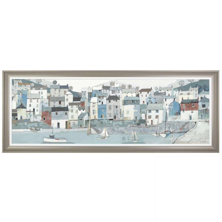 Shoreline by artist Adelene Fletcher shows the different colours of the fishing village harbour cottages in a pastel palette. Framed and unglazed this is a beautiful picture for above a sofa, in a hallway or dining room. See other prints by the same artist.