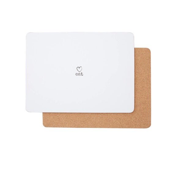 Crafted from lightweight, durable cork, this set of four placemats offers effortless cleaning, ideal for any meal. Featuring a refined love heart motif paired with the word ‘eat,’ these placemats bring understated elegance to your table setting.
