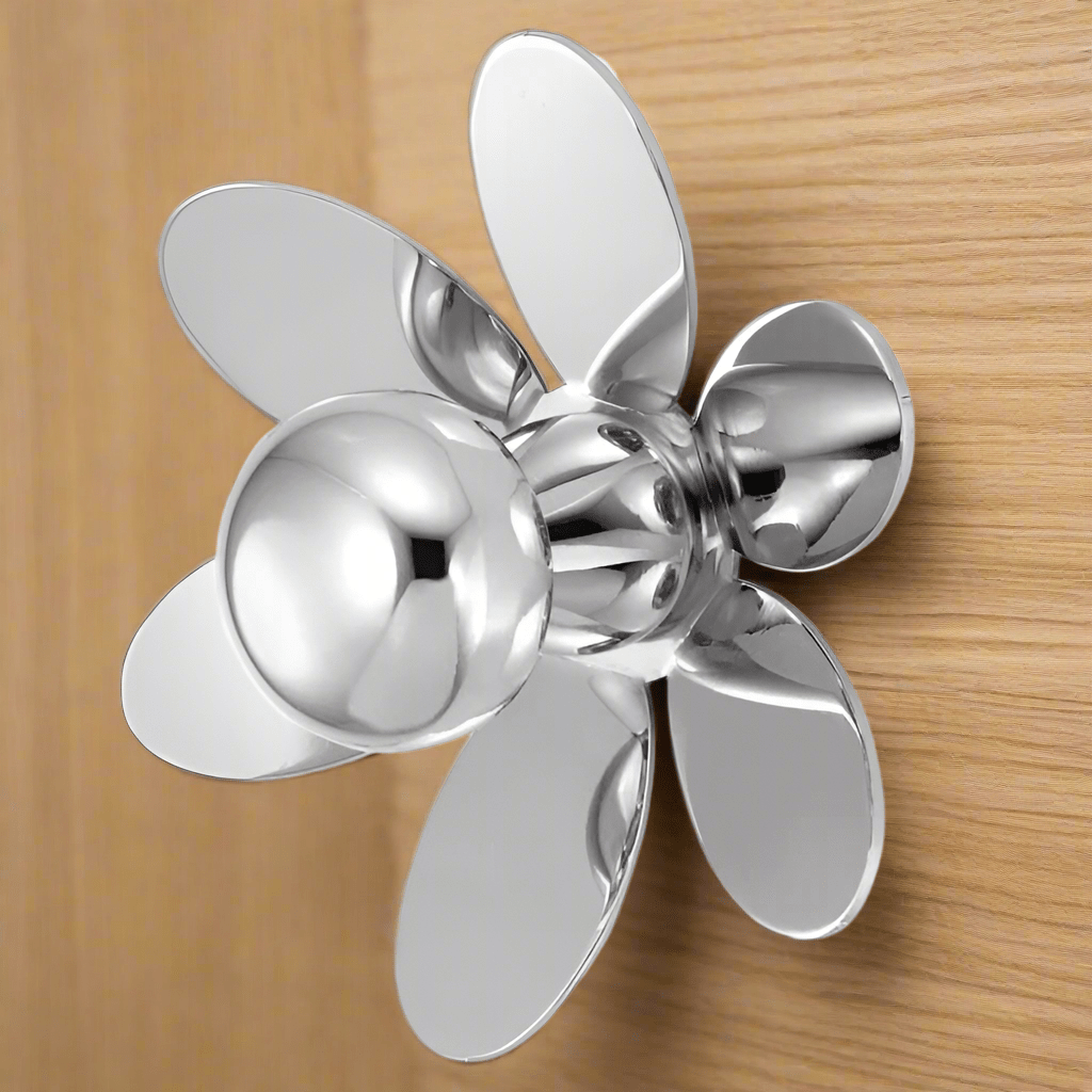 Practical and stylish for your entryway, the elegant Daisy Coat Hooks look great together in a line or individually on the back of a door or in a bathroom. Their wall mounts are discreetly concealed behind the petals, offering a sleek and refined appearance. Engineered to hold up to 5kg, these hooks blend durability with design. Crafted from robust stainless steel and finished in polished bright nickel, the Daisy Hooks provide a sophisticated and practical solution for organising coats or dressing gowns.
