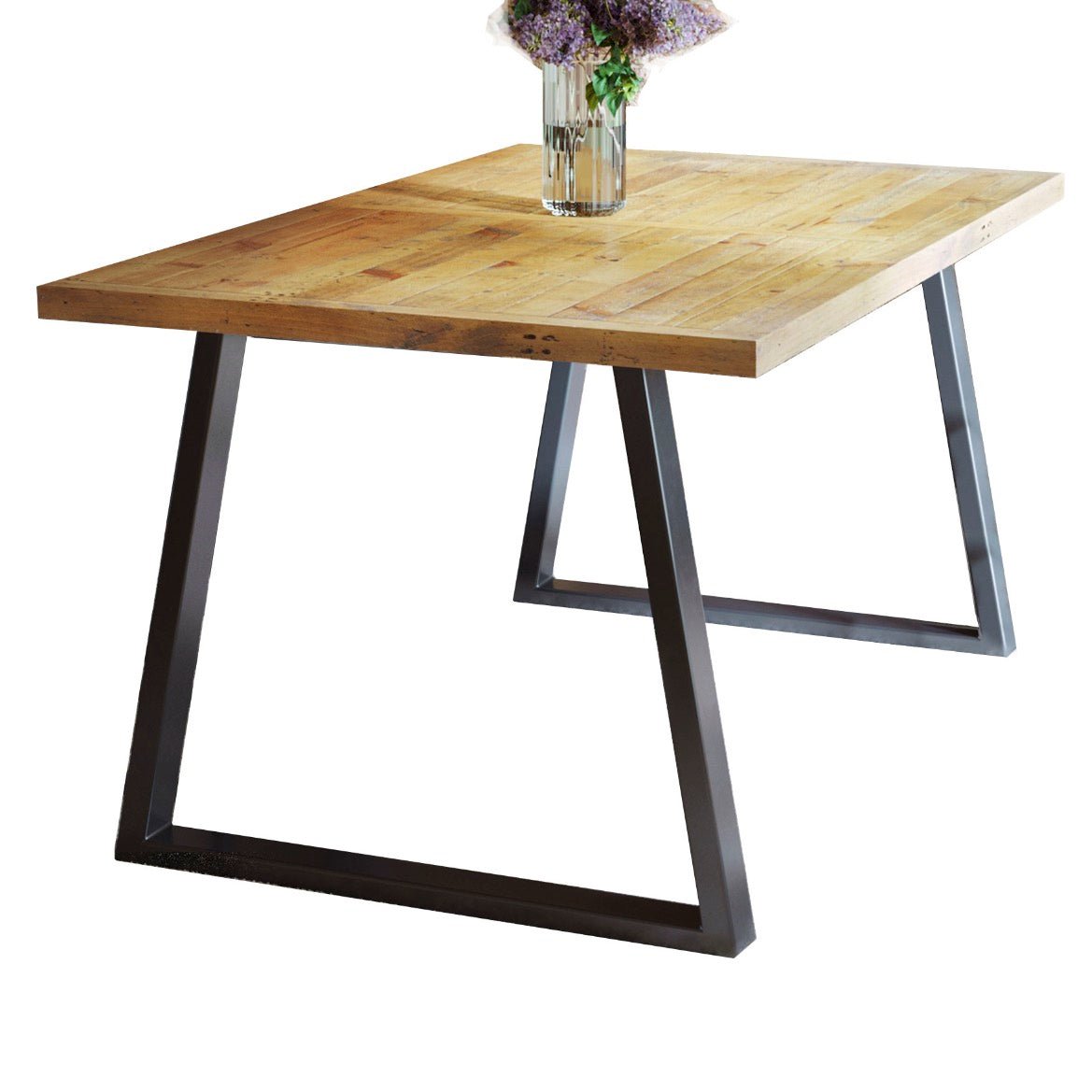 The distressed, powder coated steel frame ensures an attractive matt finish, which combines beautifully with the solid reclaimed rough sawn wood.