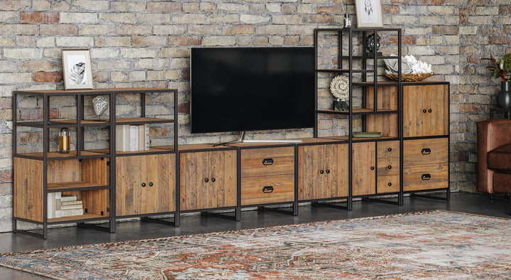 The Ooki Low Cupboard is part of a modular collection so that you can either use on its own or build part of a modular arrangement to customise to your own requirements. The collection showcases strong commitment to sustainability. All external timbers used are 100% reclaimed and skilled craftsmen leave all nail holes and scars during timber preparation in order to preserve the 'weathered wood' appearance, resulting in unique character for each piece. This is a high-end collection designed to last a lifetime, with a hand-fabricated steel frame and a durable protective finish.
