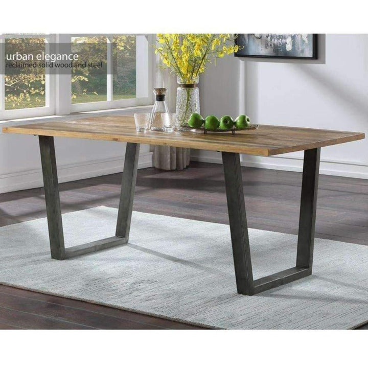 This gorgeous and stylish Urban Elegance reclaimed dining table seats 6-8 people. The distressed, powder coated steel frame ensures an attractive matt finish, which combines beautifully with the solid reclaimed rough sawn wood Featuring a stylish cross design in the frame, these pieces will be a focal point in any room.
