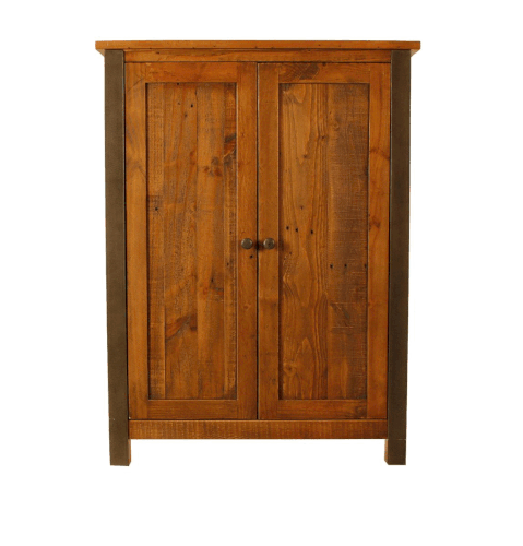 This lovely shoe cupboard features four sloping shelves plus the bottom shelf to store up to 15 pairs of shoes. The distressed, powder coated steel frame ensures an attractive matt finish, which combines beautifully with the solid reclaimed rough sawn wood. Featuring a stylish cross design in the frame, these pieces will be a focal point in any room.
