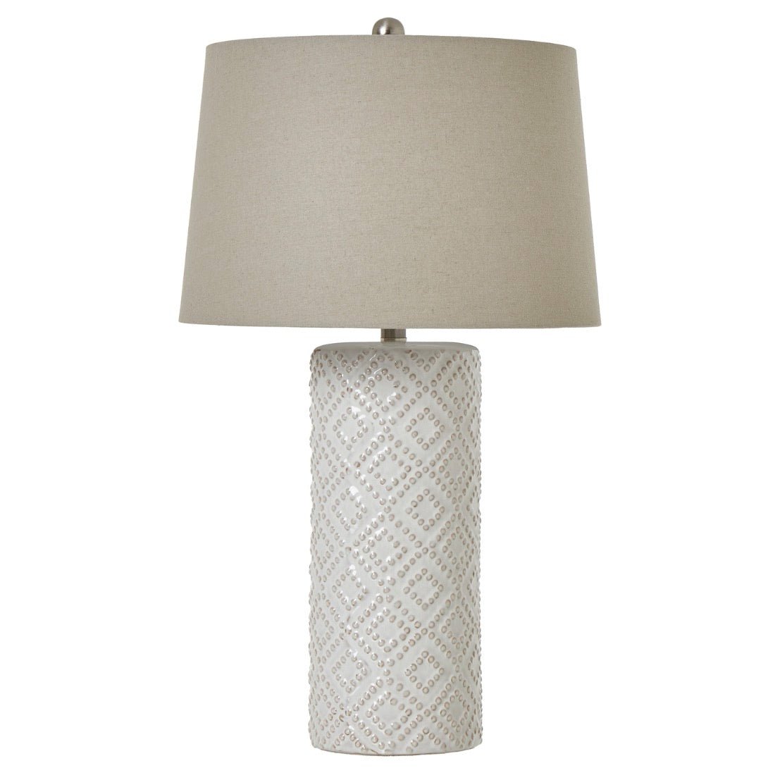 This White Beaded Ceramic Lamp showcases exquisite bead detailing and is topped with a refined linen shade. Perfectly suited for modern and coastal décor, its detailed beadwork introduces depth and elegance.