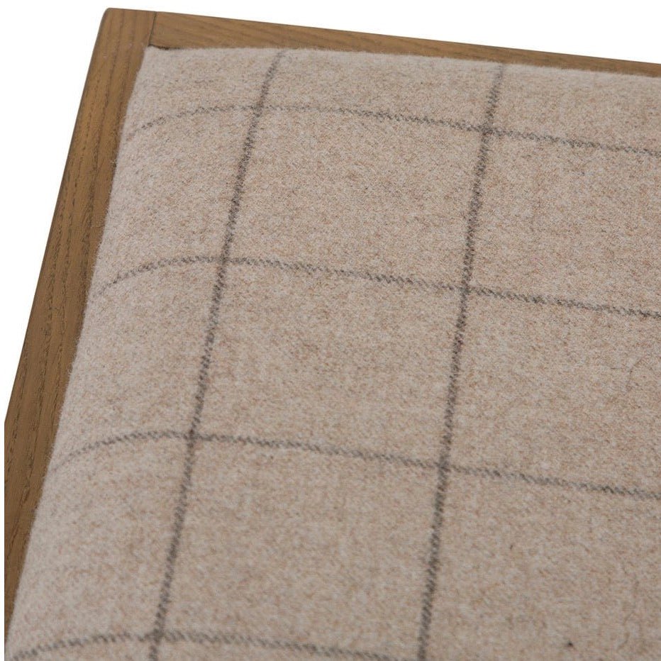 The timeless style of our Rusper Oak range with this hall storage bench in an oak finish, complete with 3 wicker baskets and smoked oak wooden top and upholstered natural check wool seat. The perfect practical way to bring a touch of class, contrast and character to your hallway.