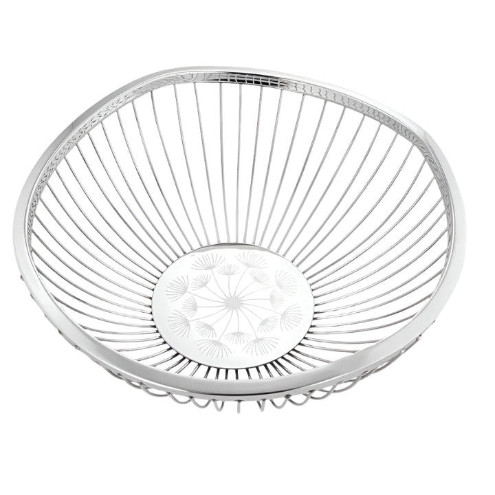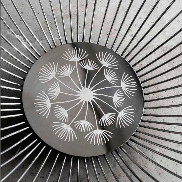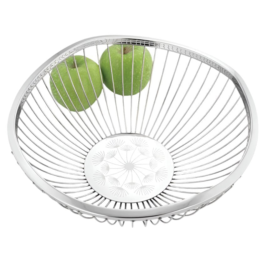 Constructed from high-quality stainless steel, this fruit bowl expertly balances style and practicality. The wide edge of the bowl expertly accentuates the intricate dandelion motif featured on the interior surface. Ideal for decoration or serving a variety of foods, such as fruit, bread, and pastries. Also available as a sculpted Saddle Bowl.