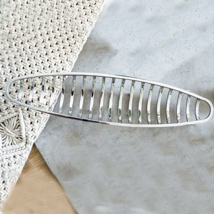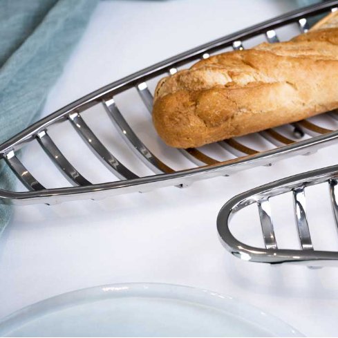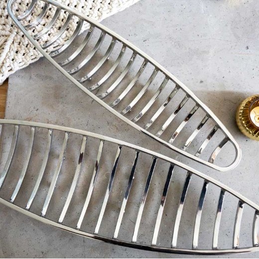 There's no better way to display your fruit or serve your bread than in this gorgeous polished stainless steel long boat bowl.  Its beautiful curved design makes it a real statement piece for your kitchen worktop or dining table.