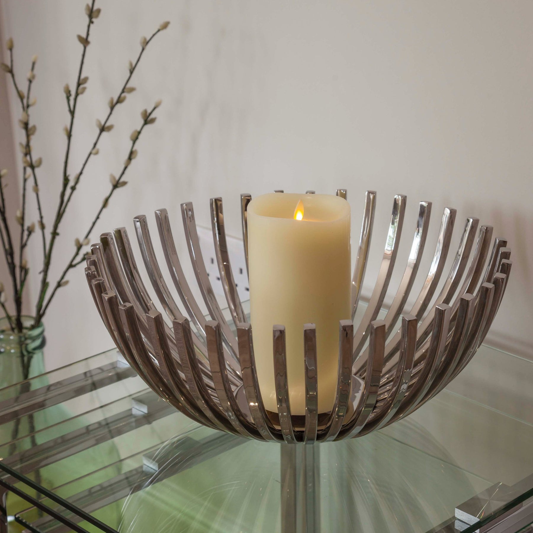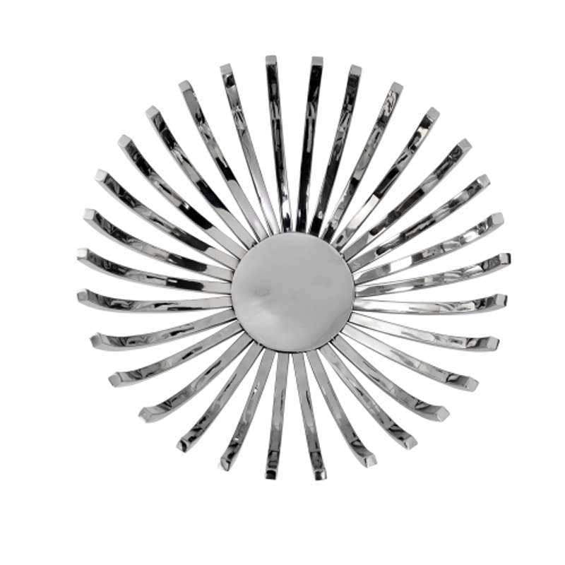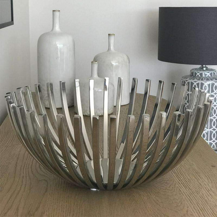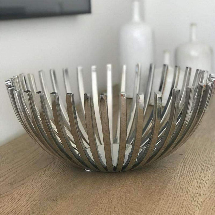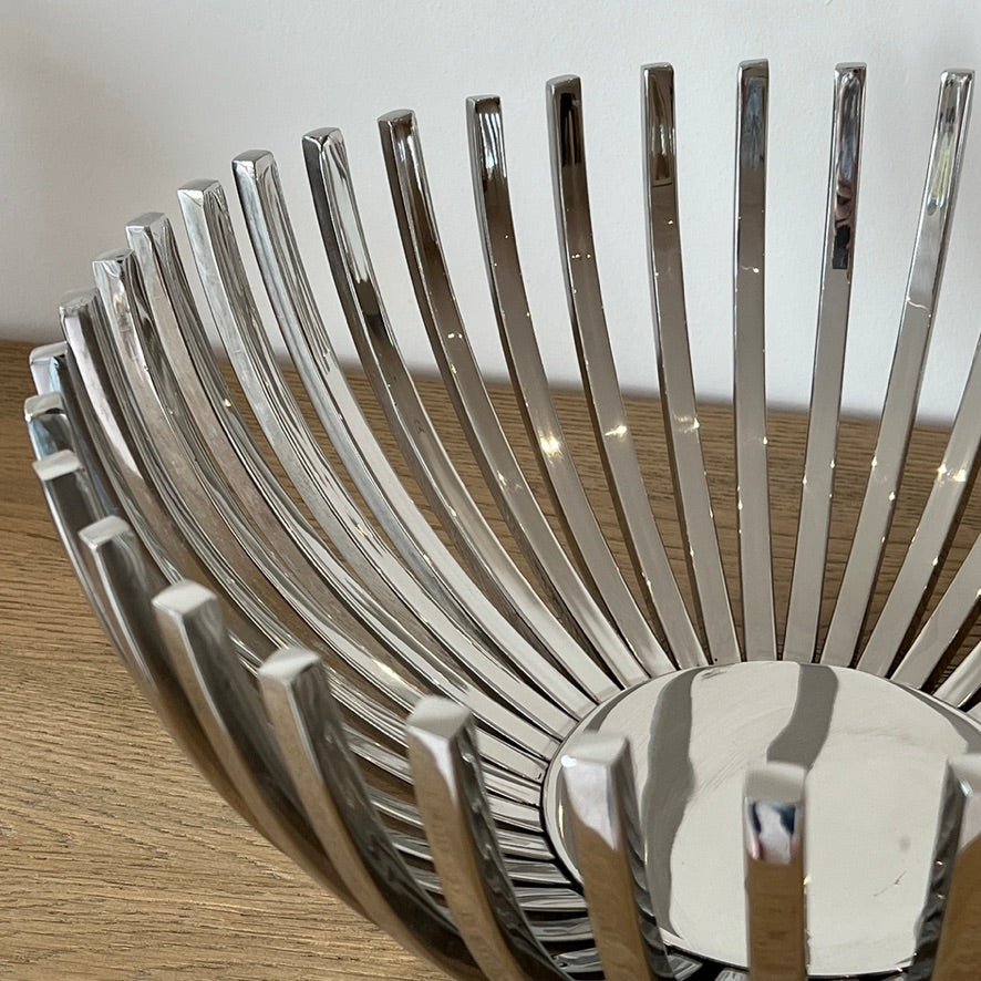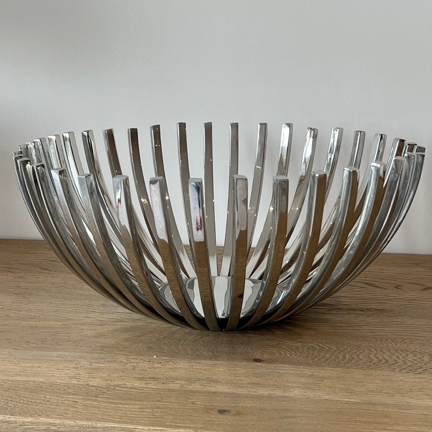 Make a bold design statement with the Repeat Stainless Steel Fruit Bowl, a handcrafted creation that brings retro-modern elegance to your dining space. Its striking pronged silhouette commands attention whilst remaining beautifully functional. It is perfect for showcasing fresh fruit, crusty bread, or simply a glowing candle as your table's focal point. Offered in both medium and large sizes.