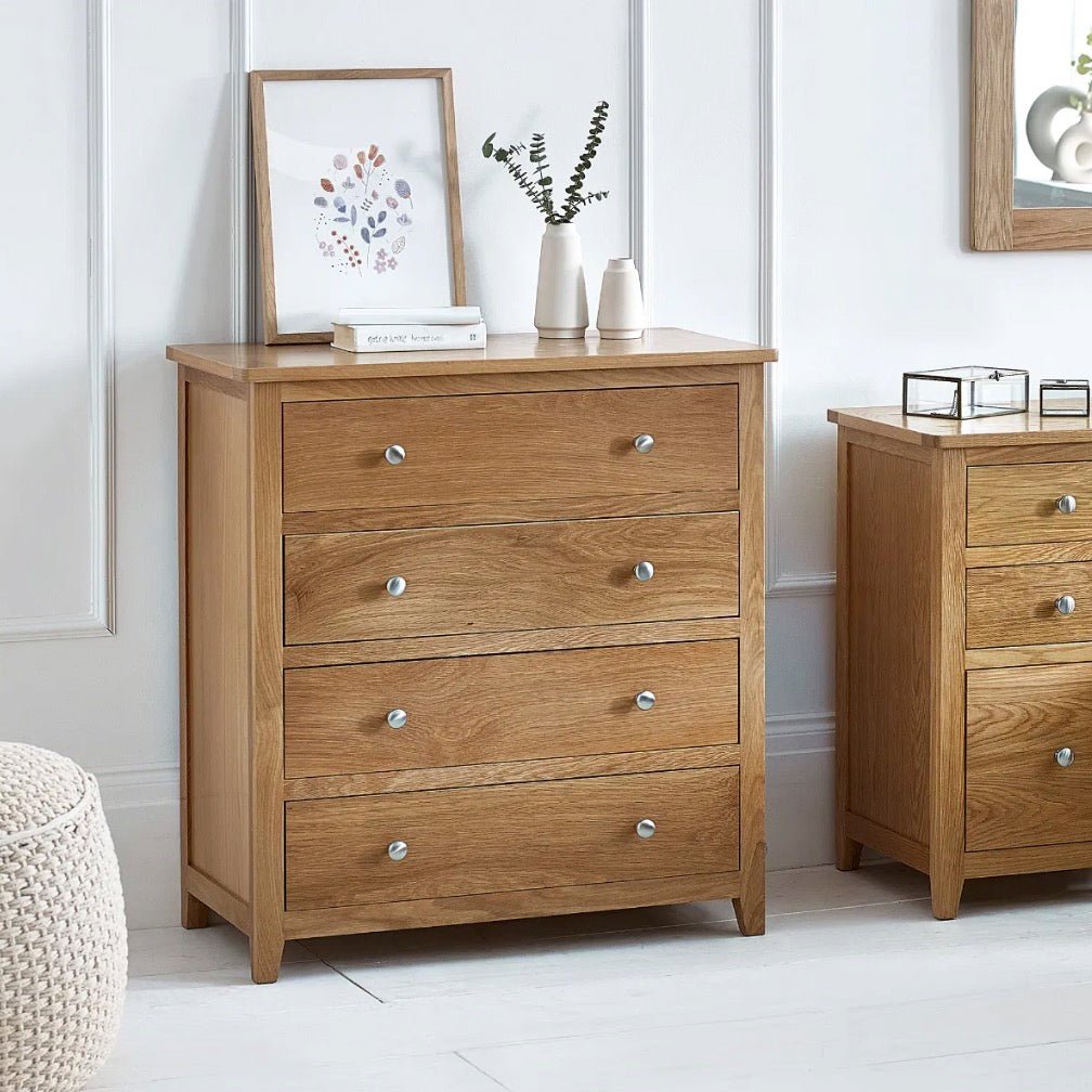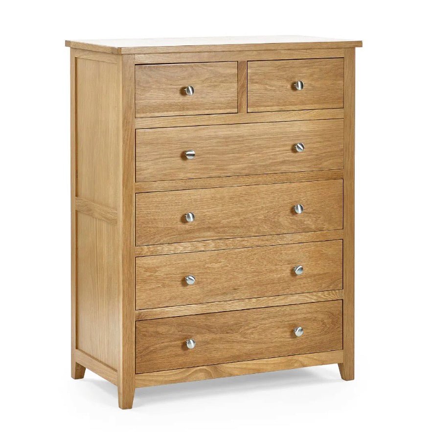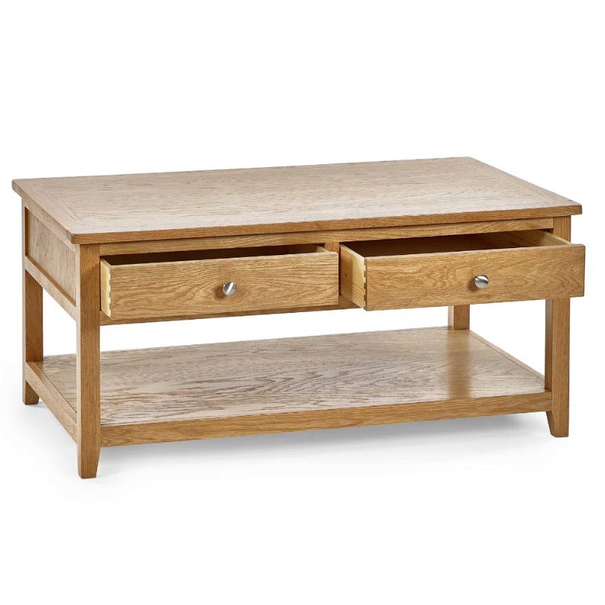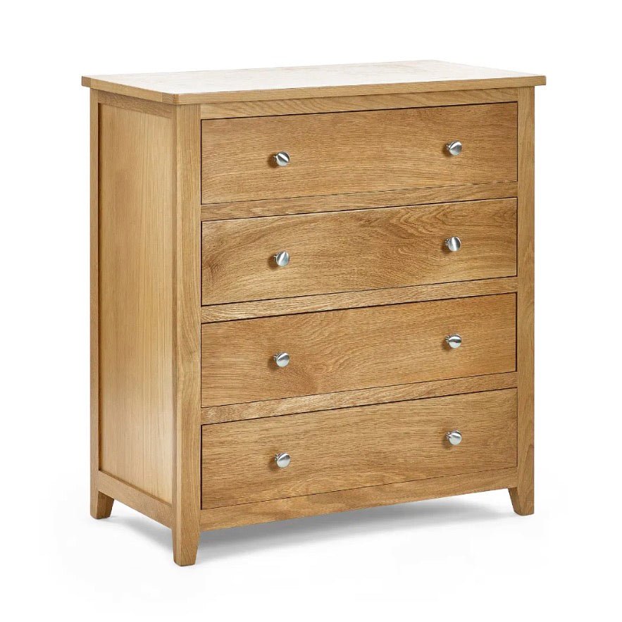 Crafted from solid oak and oak veneers, the Mallory Oak Furniture Collection by Julian Bowen offers items for both the bedroom and living space. The simple and stylish design with beautiful silver knobs is the ideal focal point for any living room.