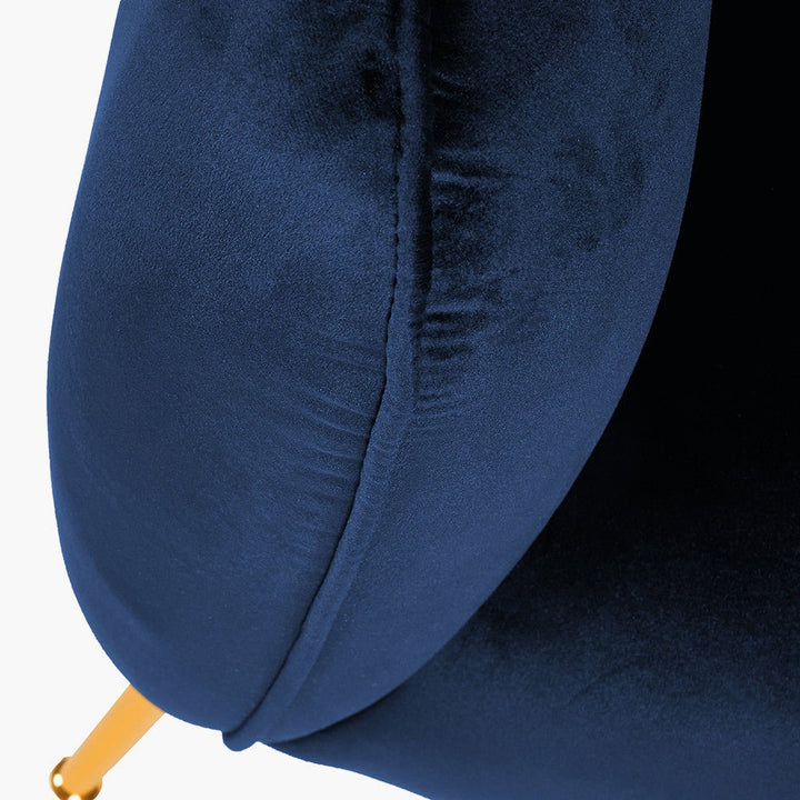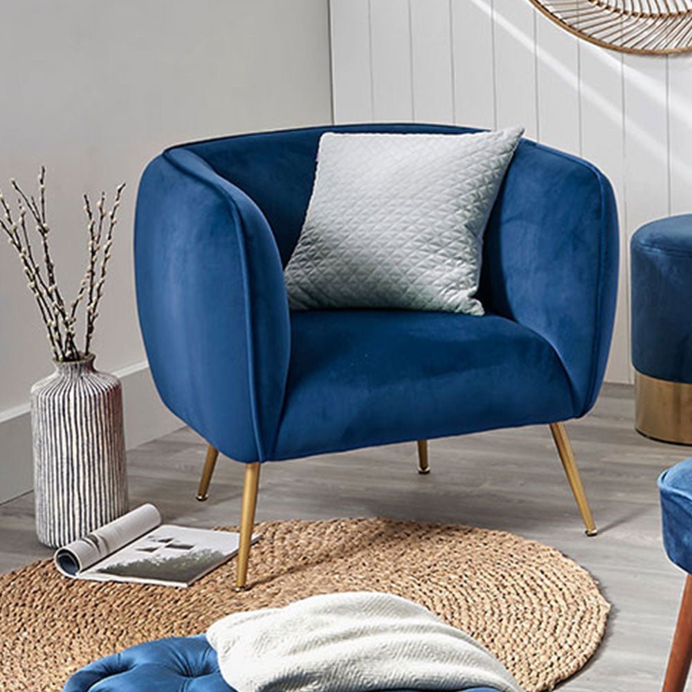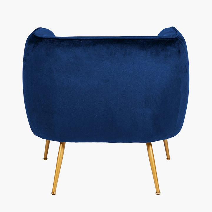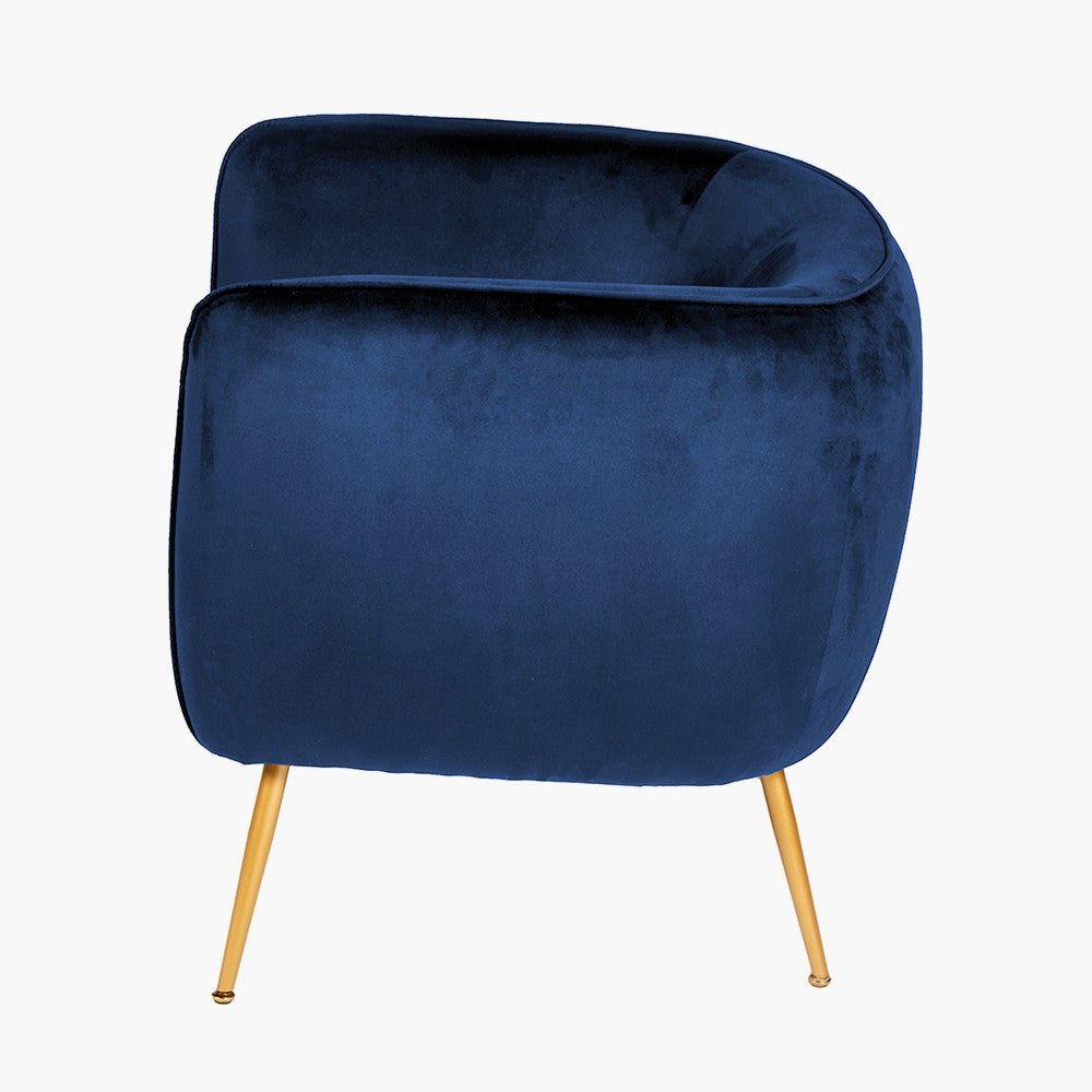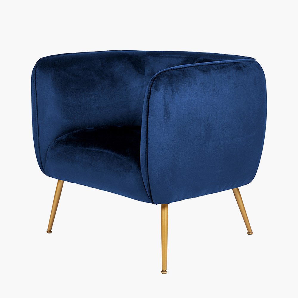 This accent sapphire blue chair is perfect for a bedroom, living room or landing space. Its blue velvet upholstery offers a plush feel. The contrasting gold legs provide a contemporary and stylish twist.