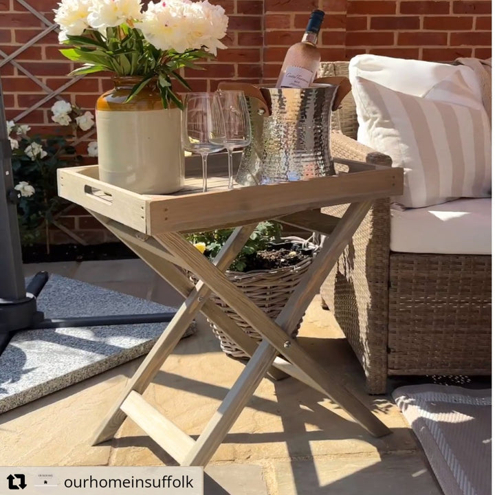 The Aldsworth Butlers Tray by Garden Trading comes in a spruce finish and is perfect for unfolding as a garden side table for drinks or nibbles. It stores away easily when folded and is untreated so can be varnished, painted or sealed - your choice of colour to match your decor.