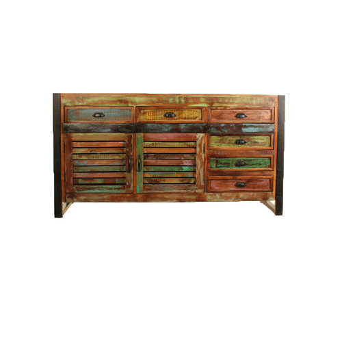 Some of the wood used can range between 50 and 150 years old and is assembled by skilled craftsmen who create this colourful and interesting furniture. As each piece in the range is hand finished using a unique blend of reclaimed timbers, every item is truly individual.