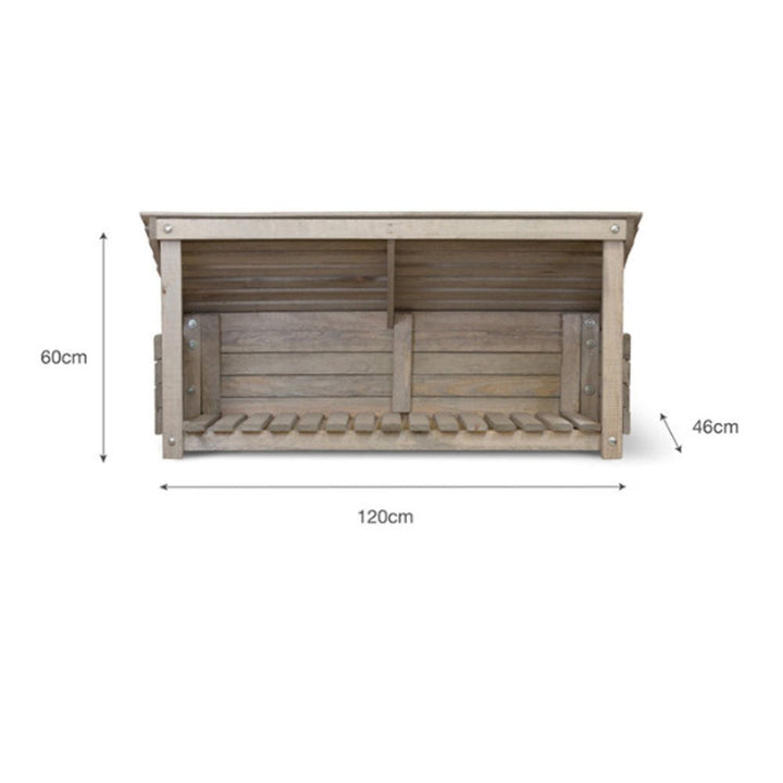 The Aldsworth Welly Boot Store offers an ideal storage solution for the family’s wellies. Constructed from stained Spruce, it features a sloped roof and three enclosed sides to shield boots and shoes from rain and seasonal elements, ensuring they remain dry and well-protected. Assembly required.