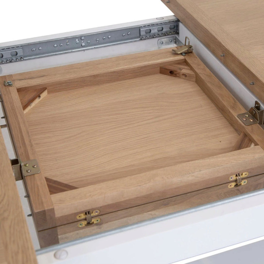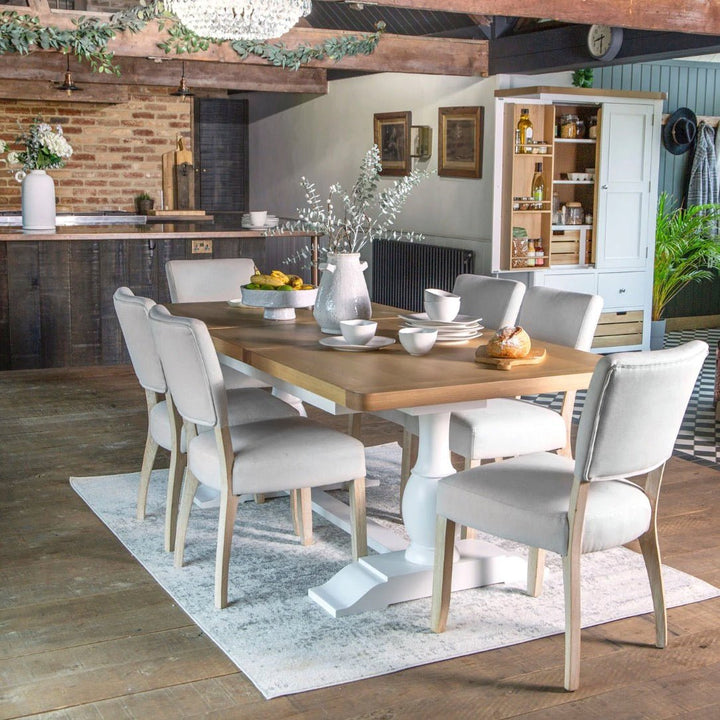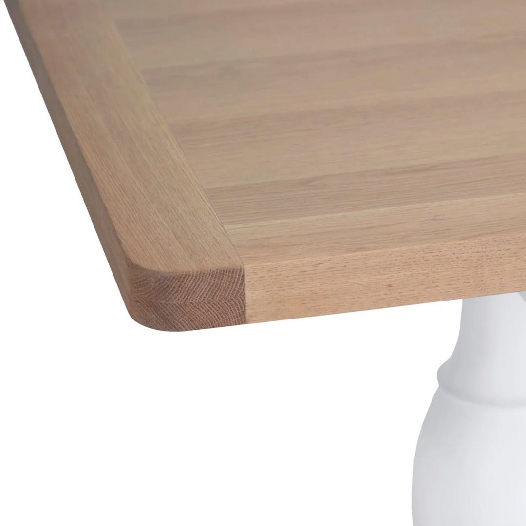 The Clanfield collection offers a contemporary take on the traditional farmhouse look, incorporating the fresh white paintwork mixed with the oak finish. The wood tops are treated with high-quality Danish furniture oil from Woca, providing durability against dirt and water while highlighting the wood's natural grain
