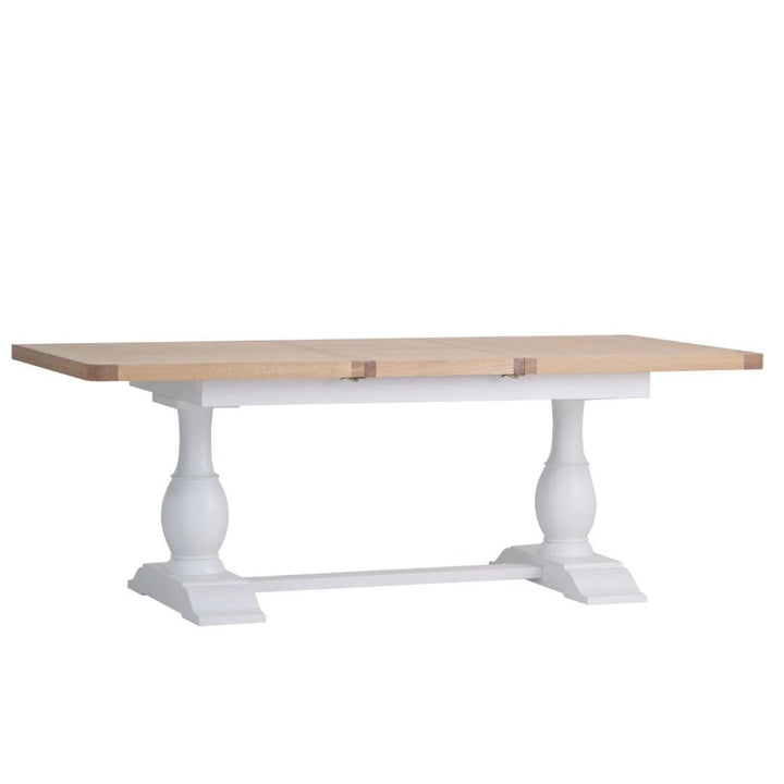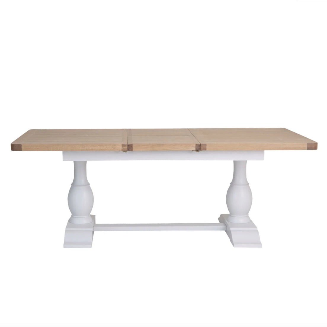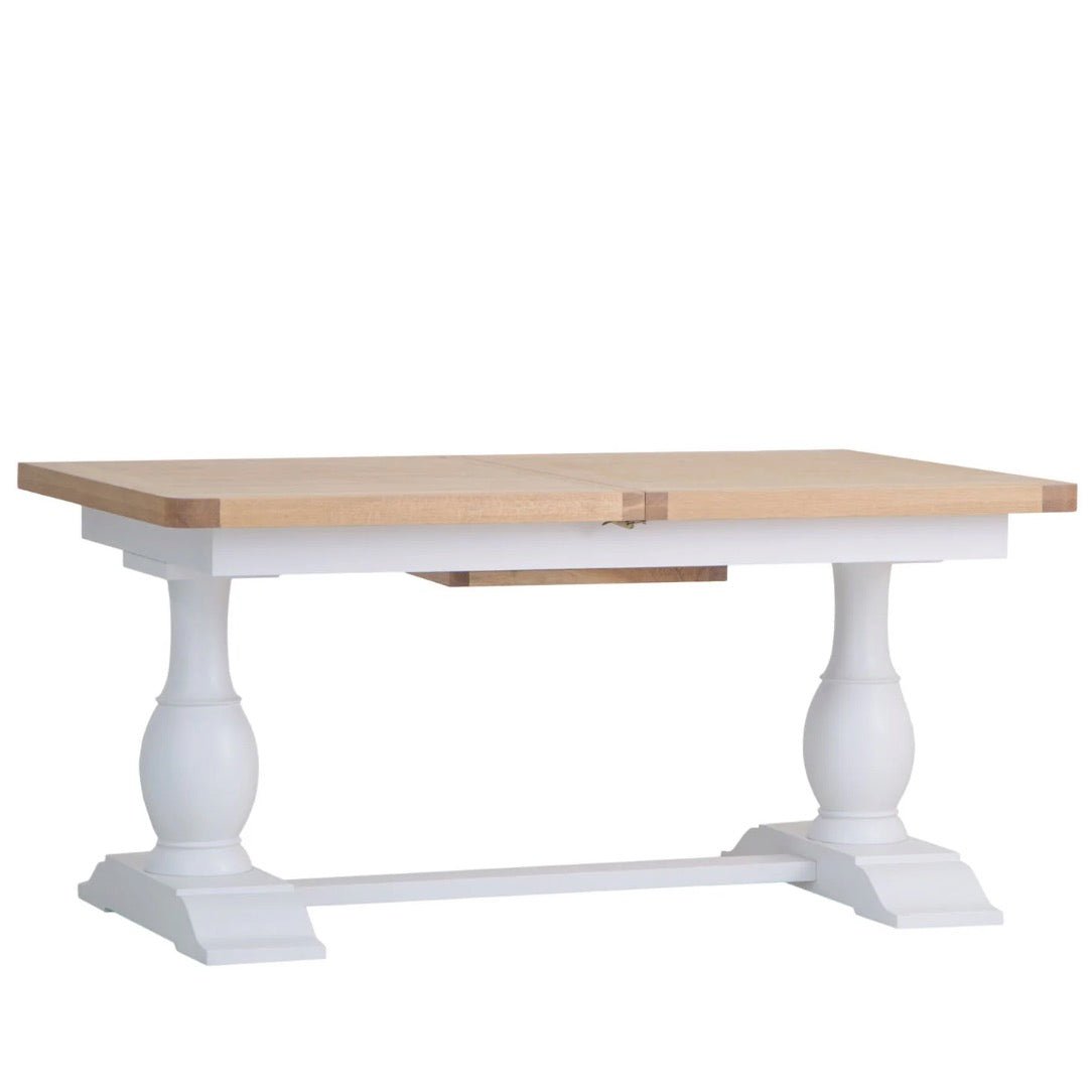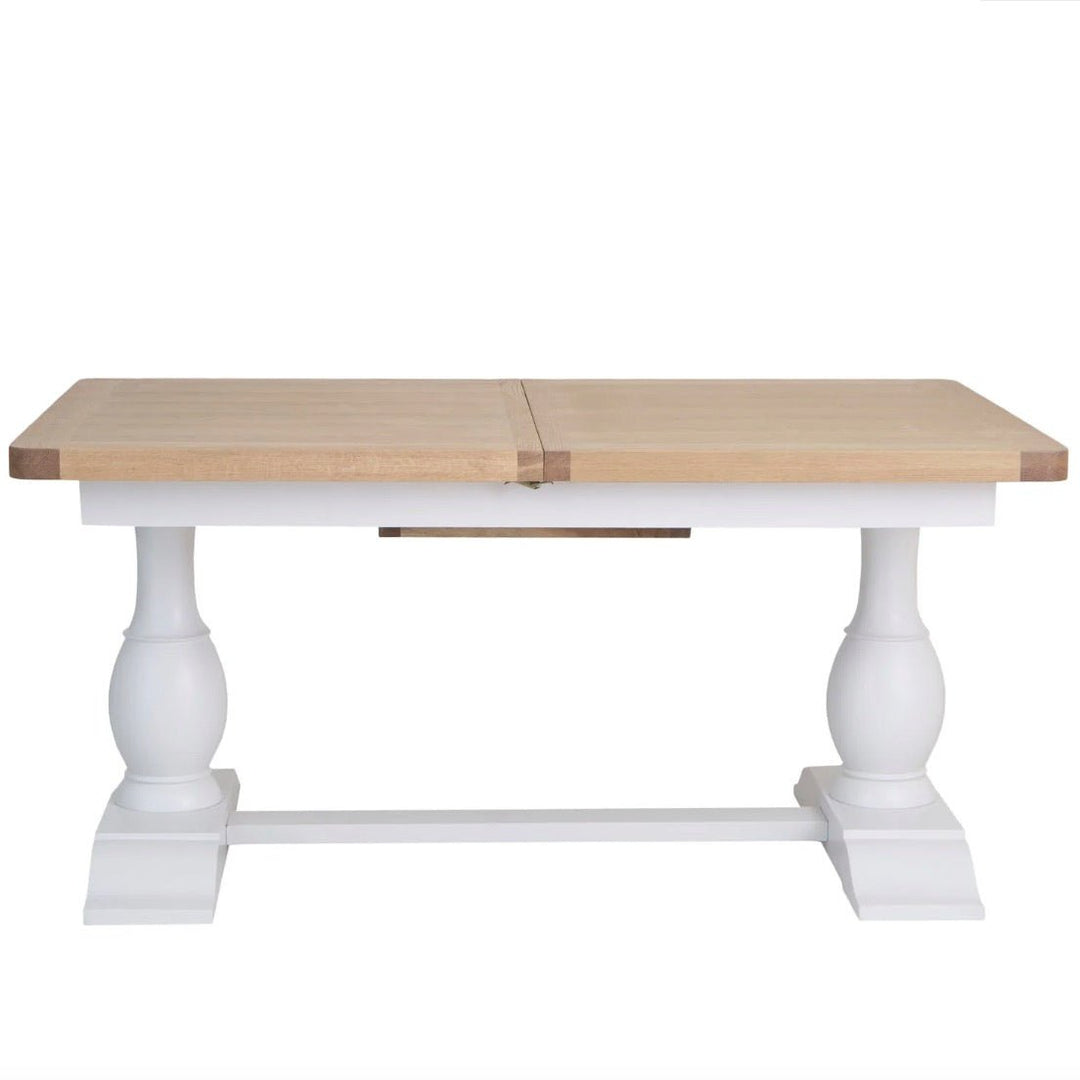 The Clanfield White Extending Dining Table offers both style and functionality. With a hidden butterfly mechanism, this table extends from 160cm to 210cm, providing ample space for larger gatherings. The solid oak top paired with elegant white pedestal legs makes this piece perfect for modern and classic interiors. Ideal for everyday dining and special occasions.