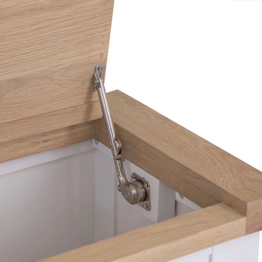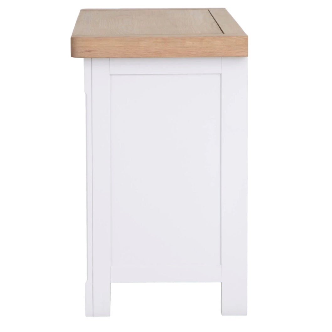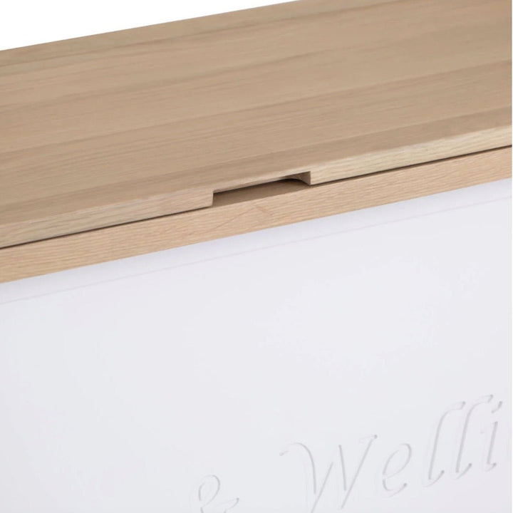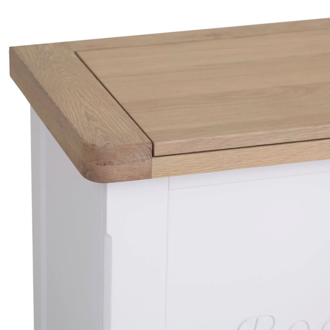 The Clanfield collection offers a contemporary take on the traditional farmhouse look, incorporating the fresh white paintwork mixed with the oak finish. The wood tops are treated with high-quality Danish furniture oil from Woca, providing durability against dirt and water while highlighting the wood's natural grain