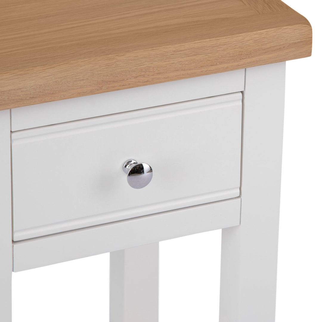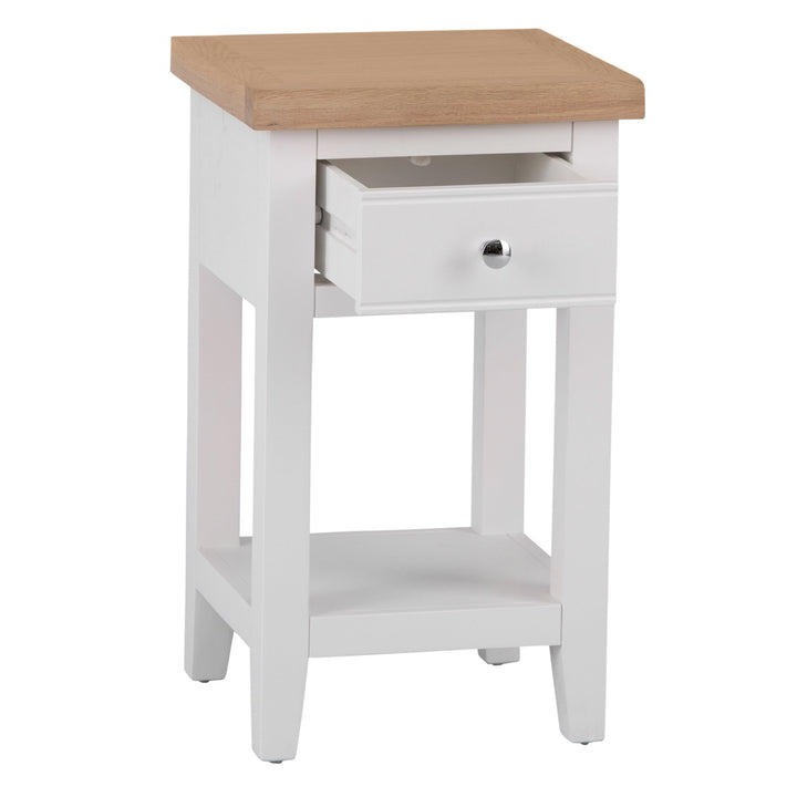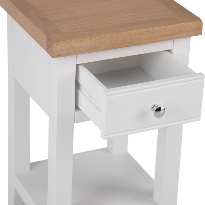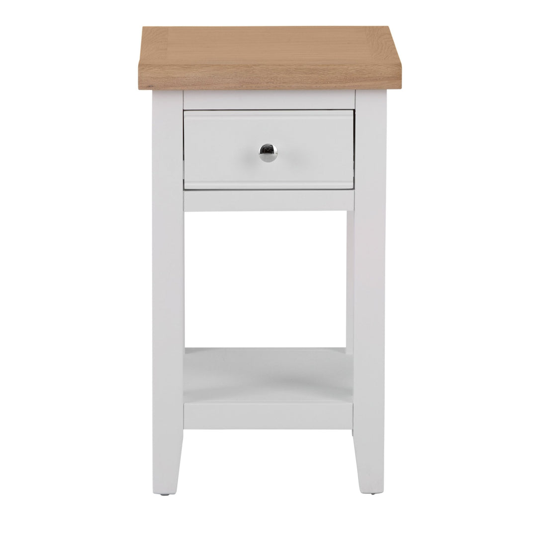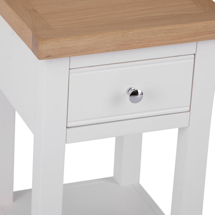 The fresh timeless style of this Windsor White Lamp Table in a painted finish with a single drawer for additional storage and can be enjoyed in interiors of all styles. The perfect way to bring a touch of class and character.