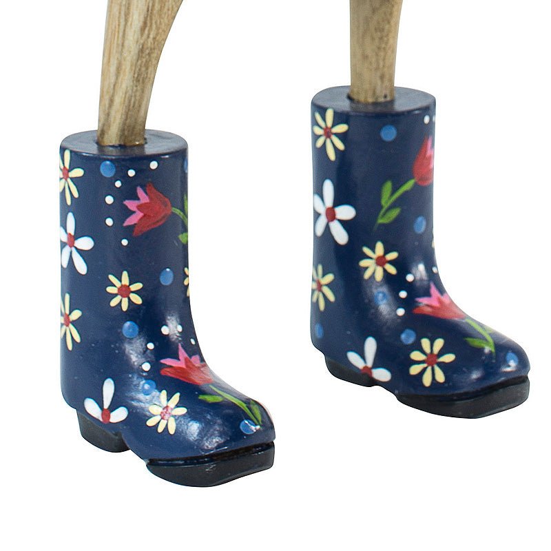 Large Wooden Duck in Blue Floral Welly Boots2 - Duck Barn Interiors