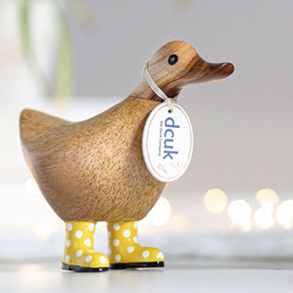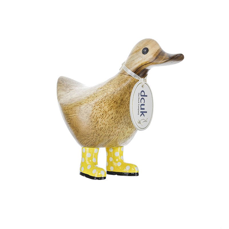 Wooden Ducky in Yellow and White Spotty Wellies1 - Duck Barn Interiors