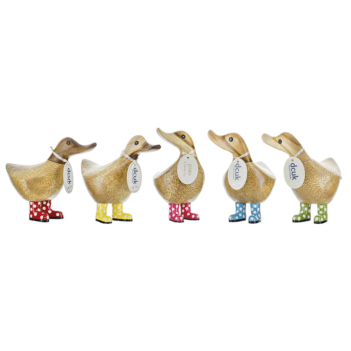 Wooden Ducky in Yellow and White Spotty Wellies3 - Duck Barn Interiors