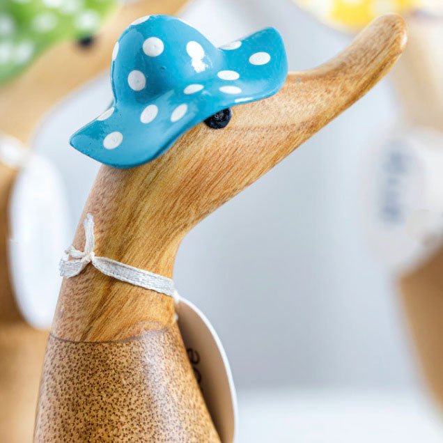 Wooden Duckling with Spotty Hat & Welly Boots - Blue & White2 - Duck Barn Interiors