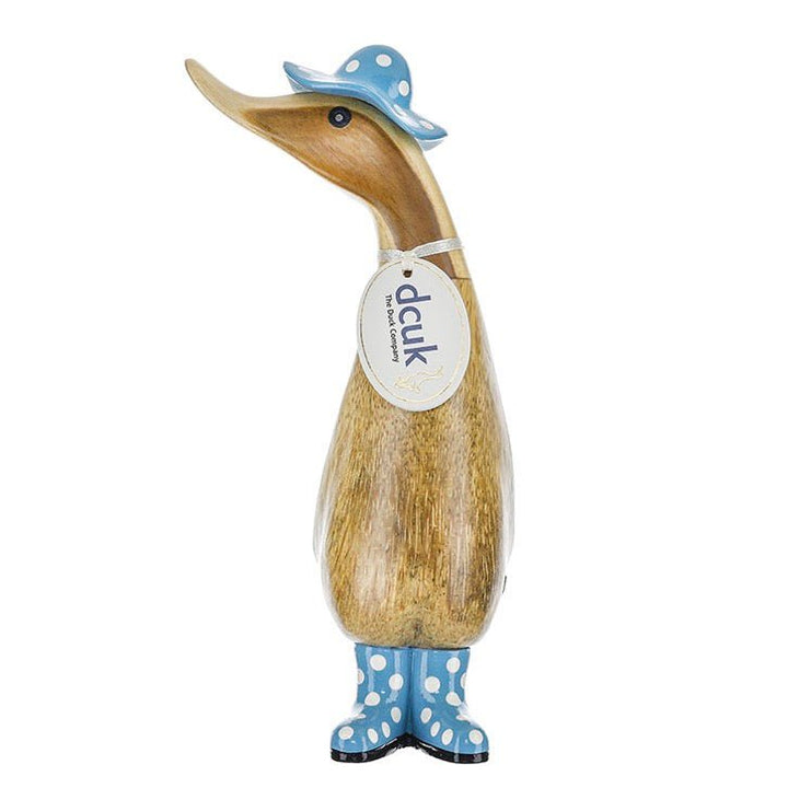 Wooden Duckling with Spotty Hat & Welly Boots - Blue & White1 - Duck Barn Interiors
