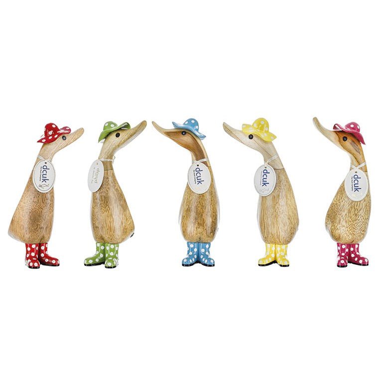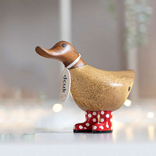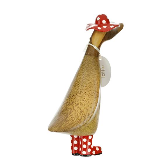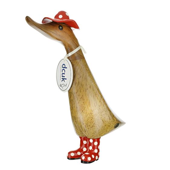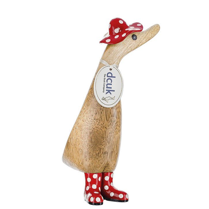 Wooden Duckling with Spotty Hat & Welly Boots - Red & White - Duck Barn Interiors