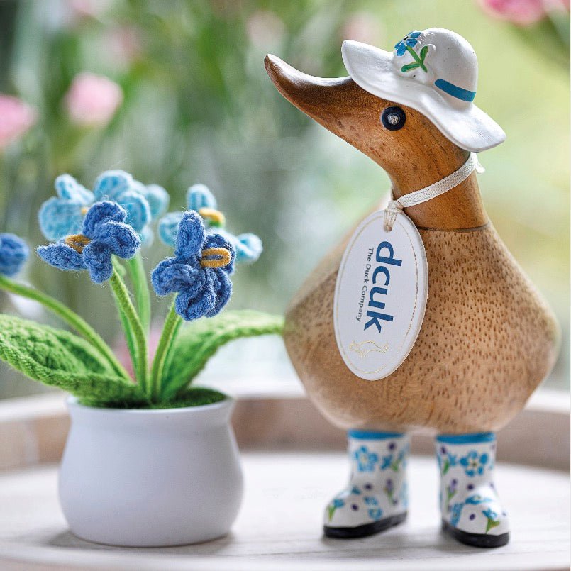 Wooden Ducky with Floral Hat & Welly Boots - Blue & White1 - Duck Barn Interiors