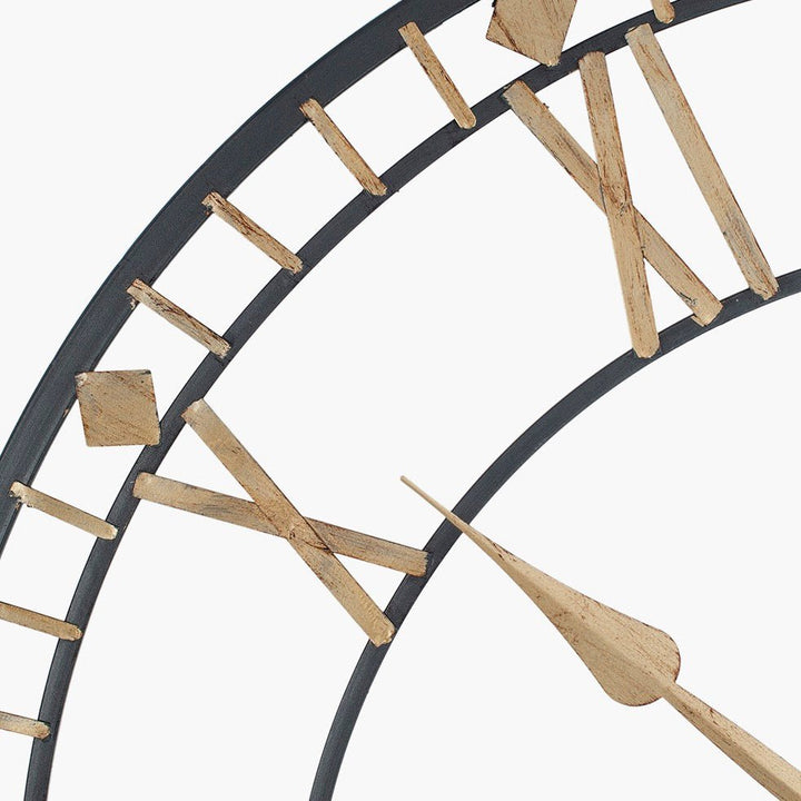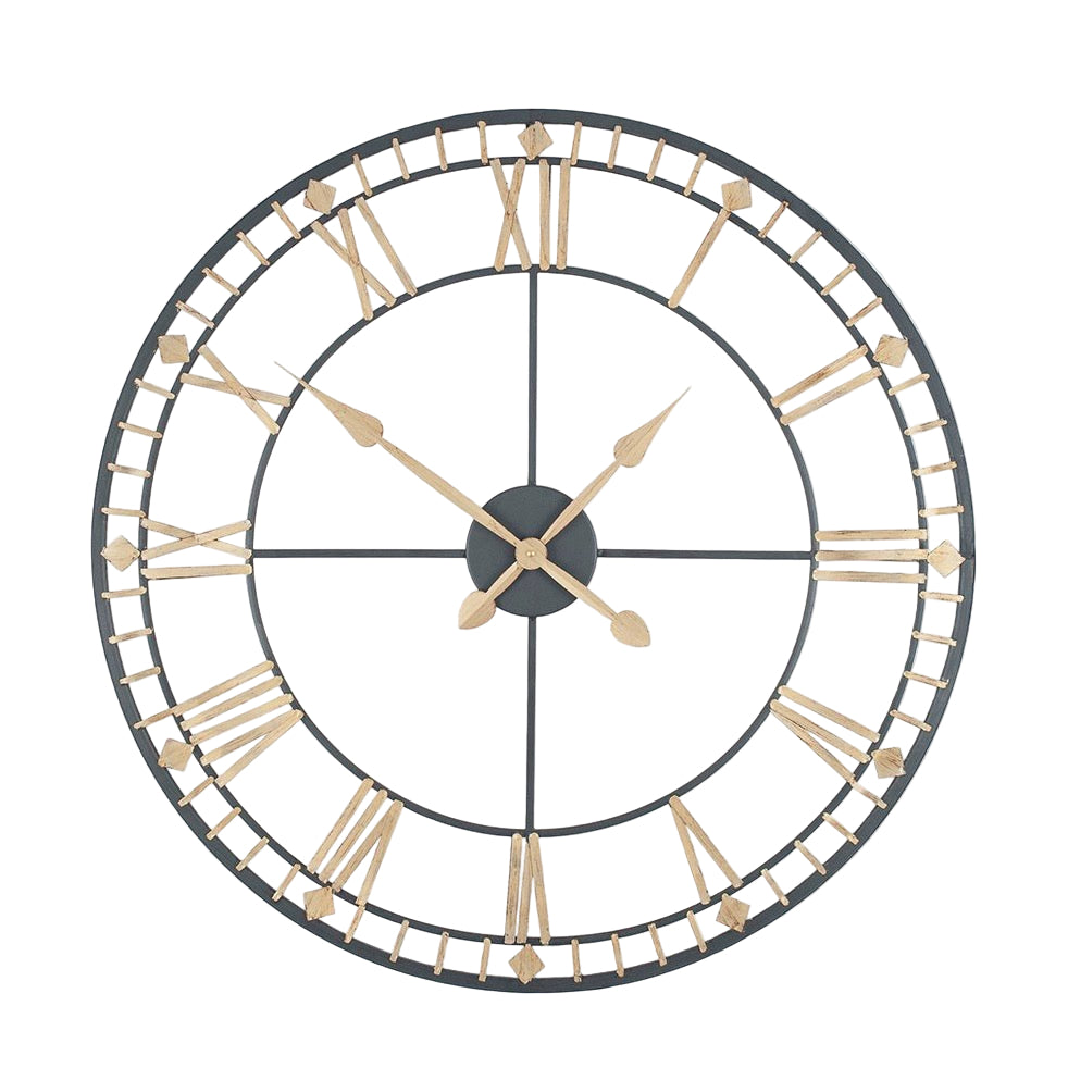 This 80cm metal wall clock features a sophisticated antique bronze and gold finish. The classical design incorporates clear Roman numerals crafted from quality metalwork. Its substantial size and refined aesthetic make it an ideal focal point for any interior wall space.