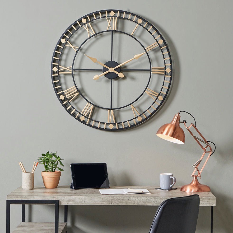 Antique Bronze and Gold Metal Extra Large Wall Clock (80cm)4 - Duck Barn Interiors