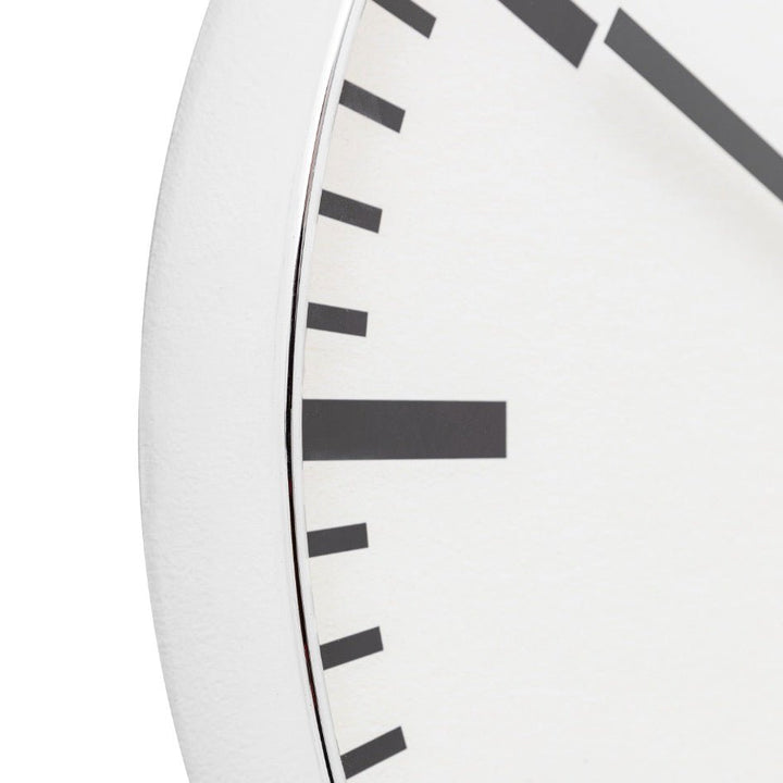 This sophisticated clock takes inspiration from the iconic Swiss railway clocks. Its design combines industrial-chic elements with a large, round face and bold, contrasting hands and numerals, resulting in a perfect blend of artistry and functionality that can complement any room.