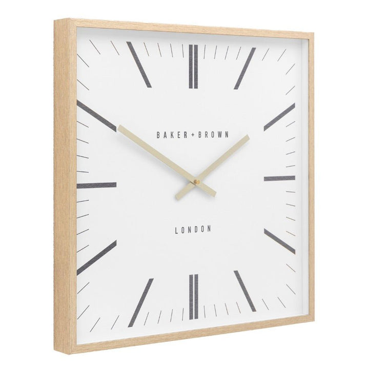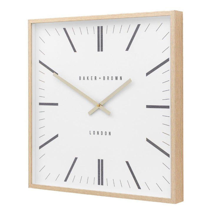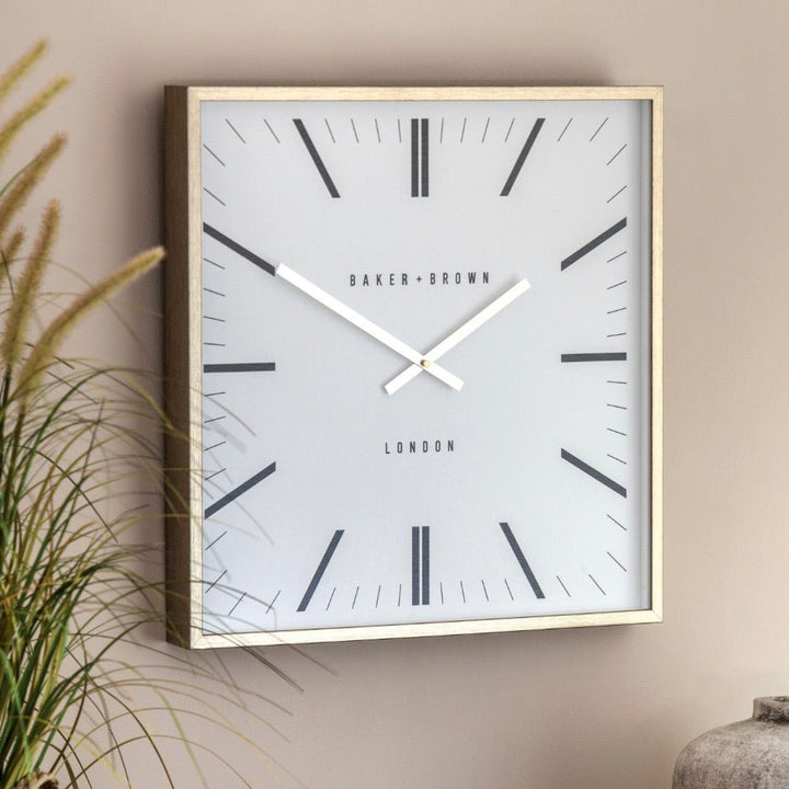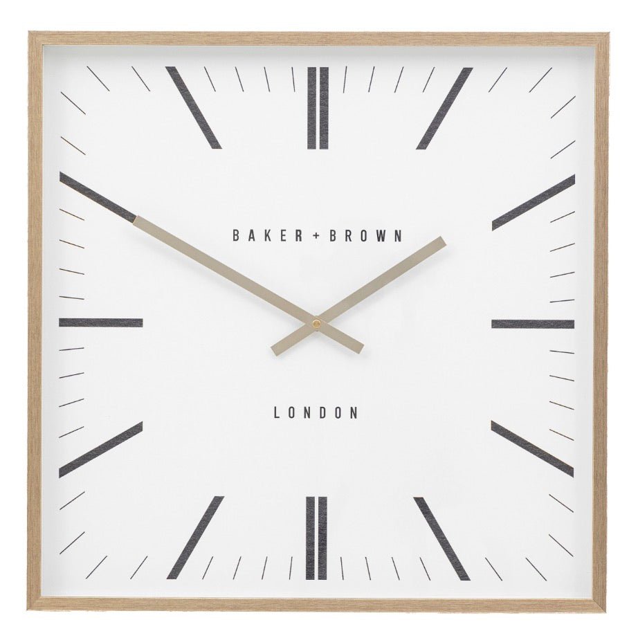 Featuring a stylish square design with bold hands and numerals, the Baker & Brown Square Penhurst Wall Clock in a gold coloured frame brings a modern touch of elegance to any space. Its minimalist design is sleek and clean, adding a touch of sophistication to any room.