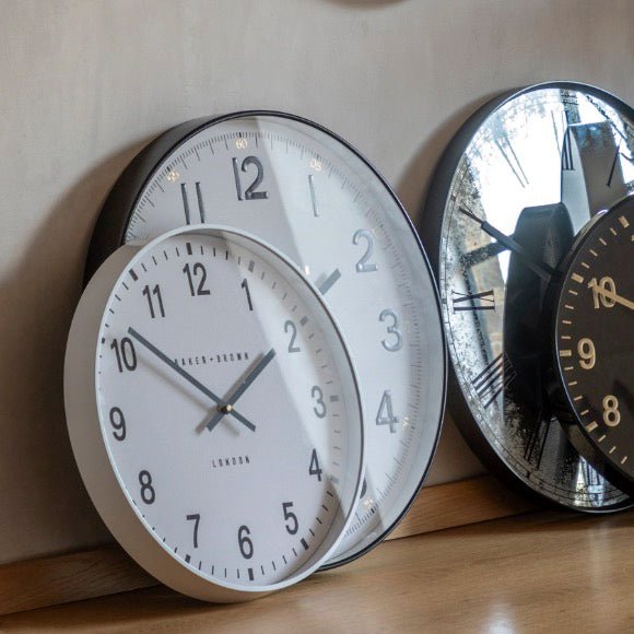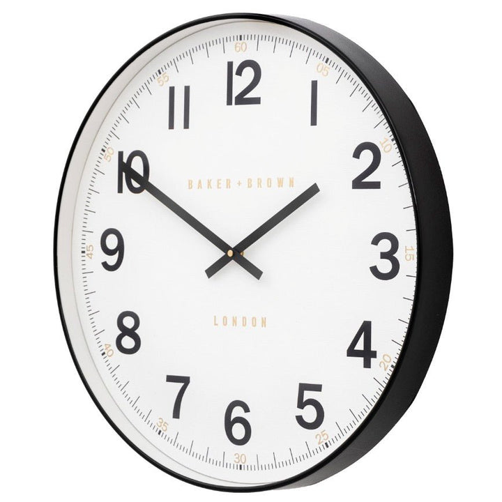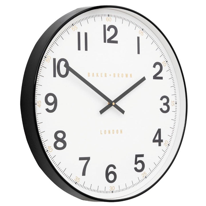 An ideal addition to any room, the Baker & Brown Whitby Wall Clock in black boasts a bold design with clear numerals that can be easily read from a distance. Expertly crafted with high-quality materials and a silent mechanism, this clock effortlessly combines classic aesthetics with modern practicality.
