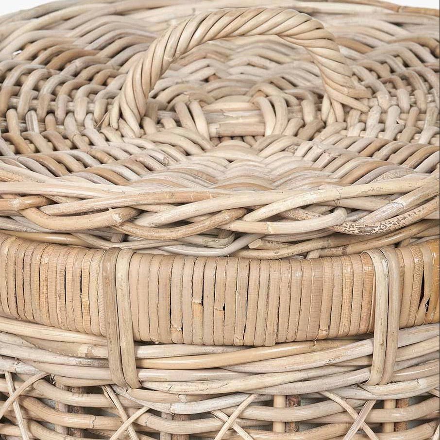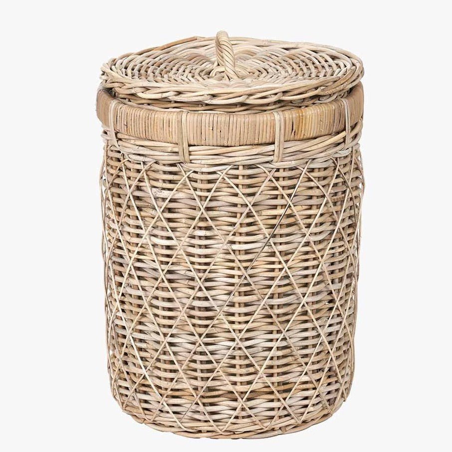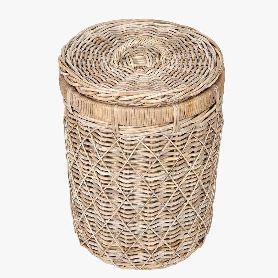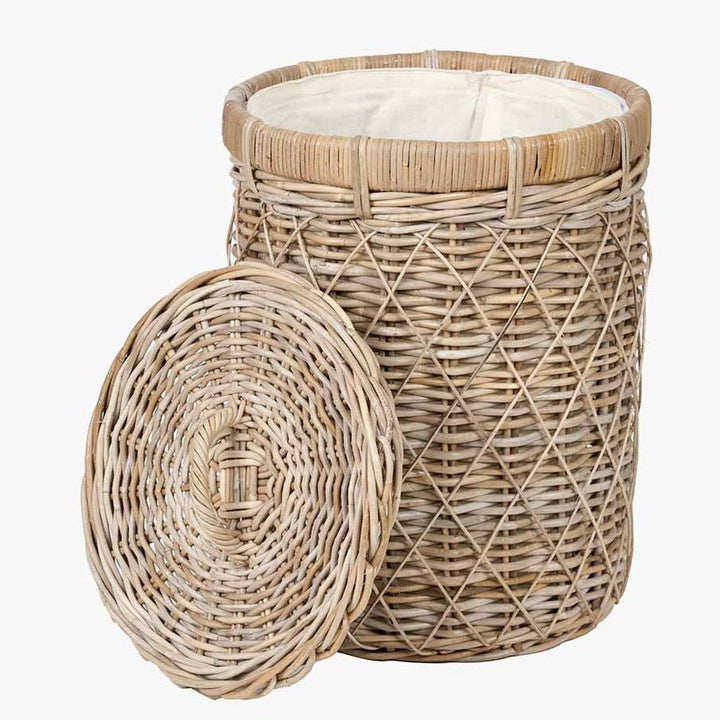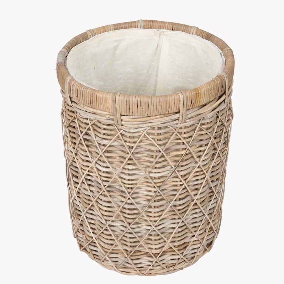 This hand woven Brown Rattan Round Laundry Basket features a removable fabric lining and a convenient lid for discreetly storing your laundry and maintaining a tidy space. The removable liner can be washed on a cool cycle. It s the ideal size to fit into any corner of your bedroom or bathroom.
