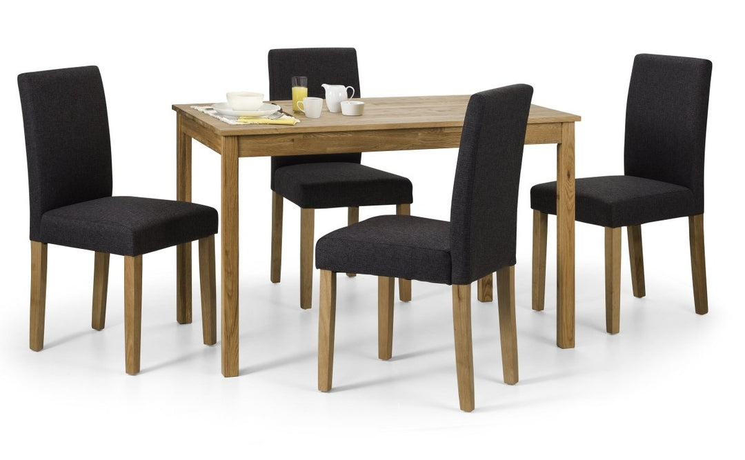 Crafted from solid white oak, the Coxmoor Dining Table seats 4 people and features a durable oiled finish that highlights the wood’s natural grain. Its classic design adds a timeless touch to any dining space.