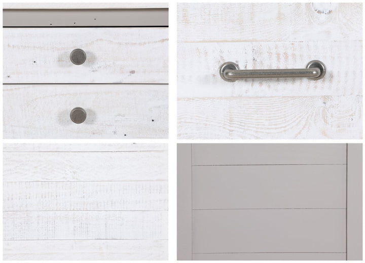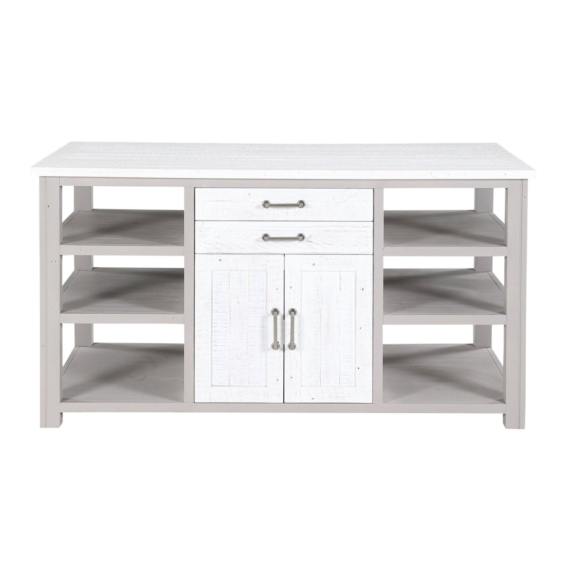 Experience the versatility and functionality of the Greystone Kitchen Island. This expertly designed piece features four drawers (two on each side) for convenient storage of cutlery and utensils, as well as a spacious cupboard accessible through two doors on either side. In addition, six open shelves provide ample space for organising and displaying your kitchen essentials.