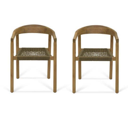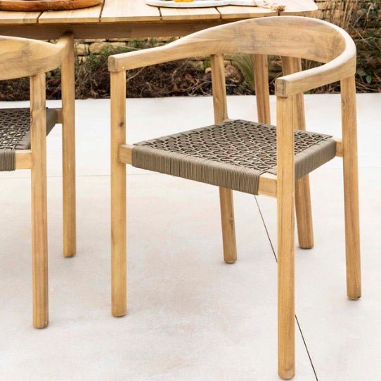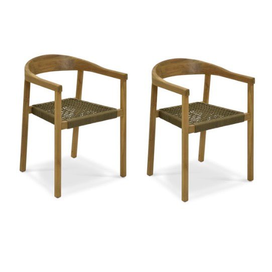 The Harford Dining Chairs offer a touch of sophistication to any outdoor space, perfect for hosting gatherings with loved ones this summer. With their tub chair design and armrests, these chairs provide exceptional comfort for leisurely afternoons in the garden. Made from acacia wood and Olive Green polyrope, each set includes two chairs to accommodate your table size. These chairs are durable and weatherproof, making them suitable for year-round outdoor use, although we suggest using a protective covering during winter for optimal condition.