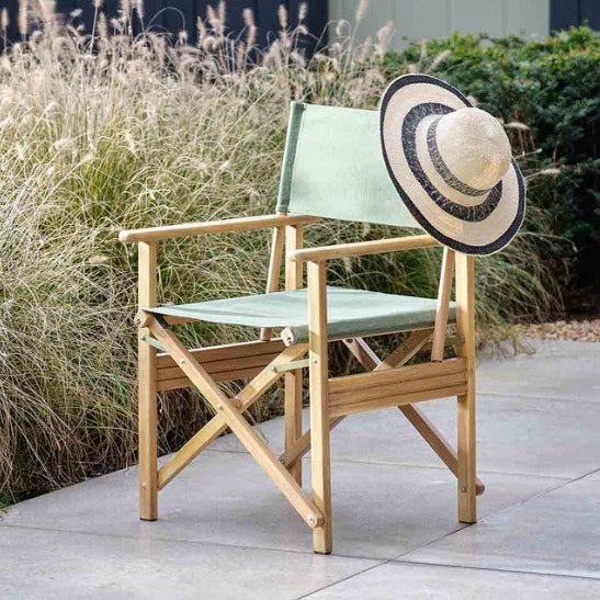 Upgrade your outdoor space with our versatile Hayle Director's Chair. Made with durable acacia wood and an Olive Green canvas sling, this classic chair is perfect for picnics, fireside gatherings, and more. Its foldable design allows for easy storage, making it the ultimate garden essential.