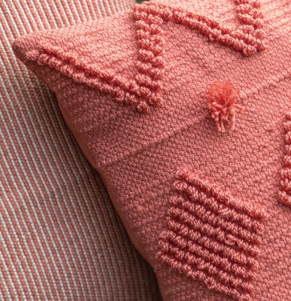 This apricot cushion adds a touch of texture and warmth to your indoor or outdoor space. With a chic tufted diamond design on one side and a plain apricot coral colouring on the other side. Its waterproof material means it is showerproof. Perfect for any boho chic style.